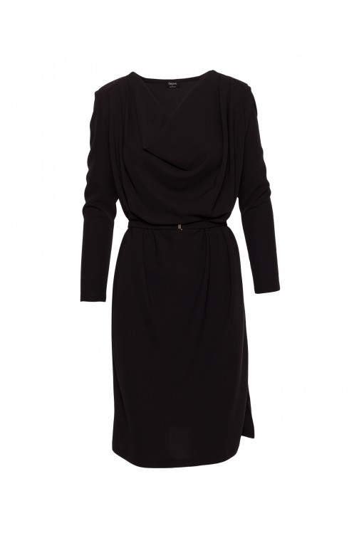 Sukienka midi z dekoltem typu woda - czarna