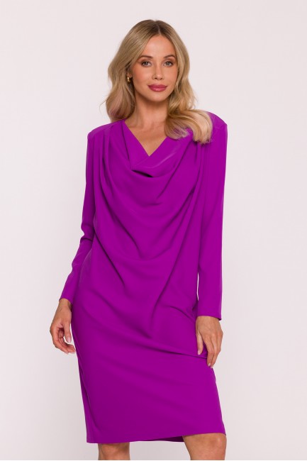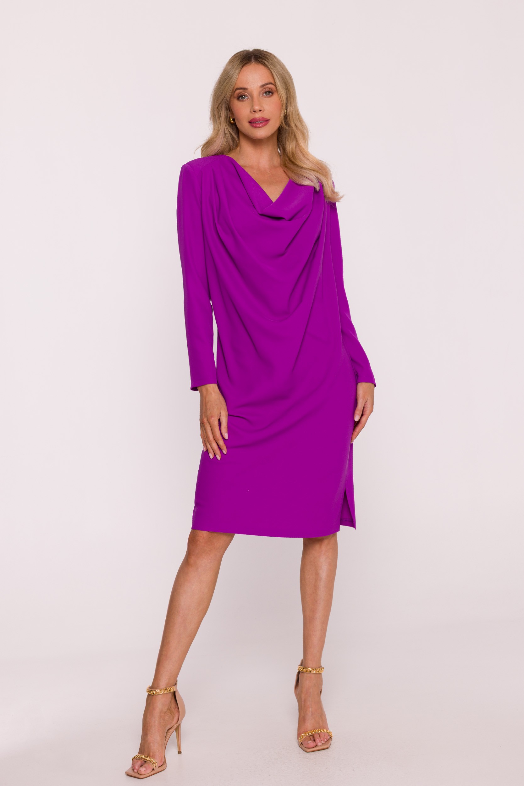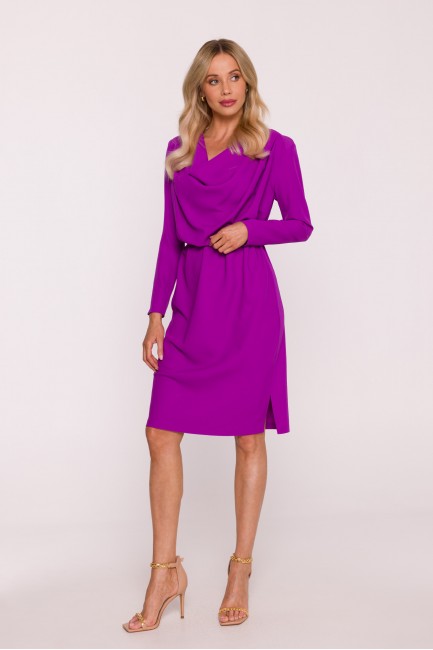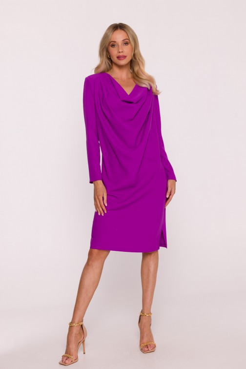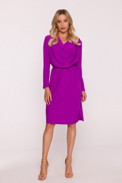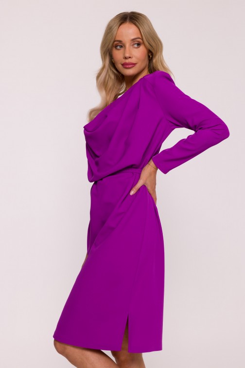 DM1503 Sukienka midi z dekoltem typu woda - lawendowa
