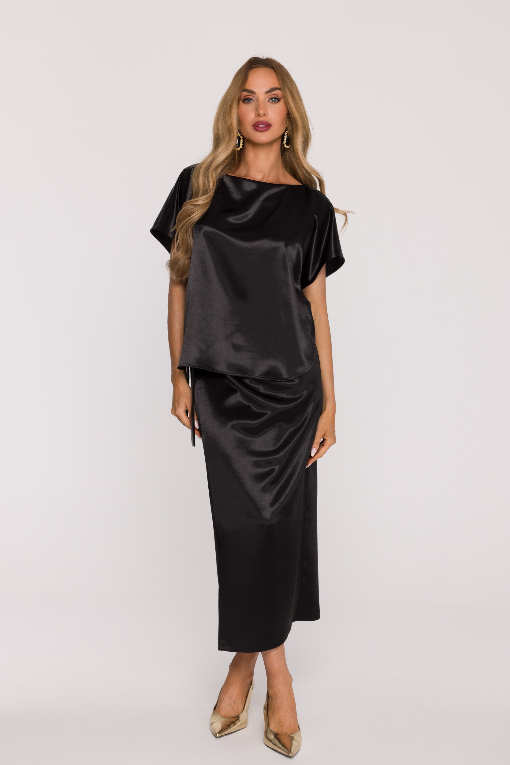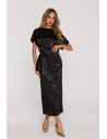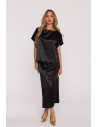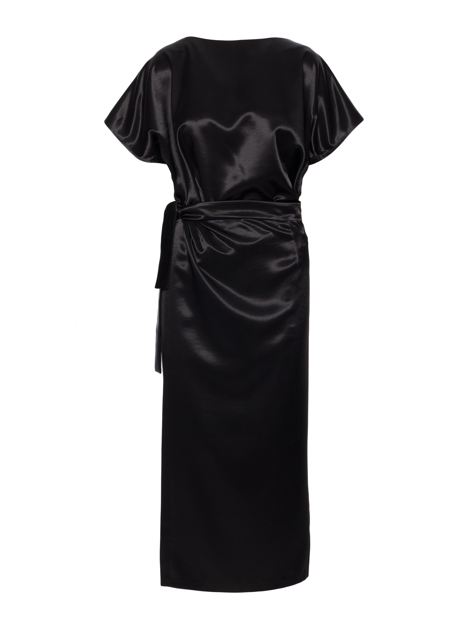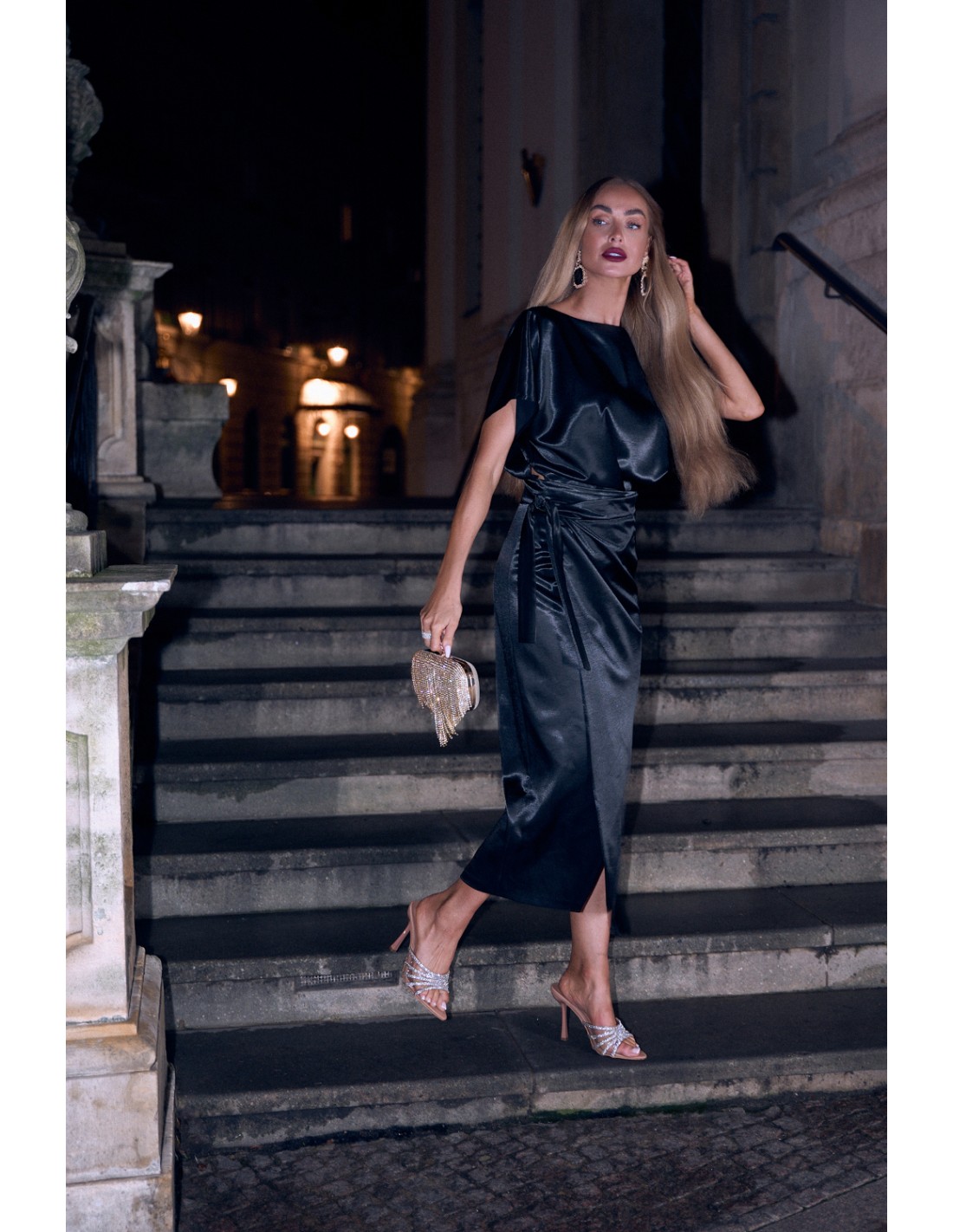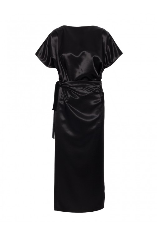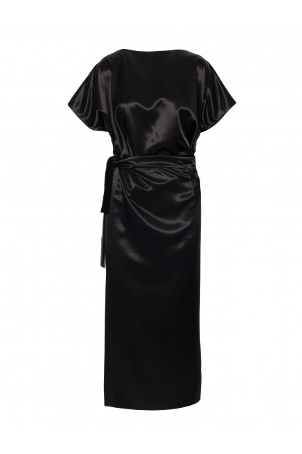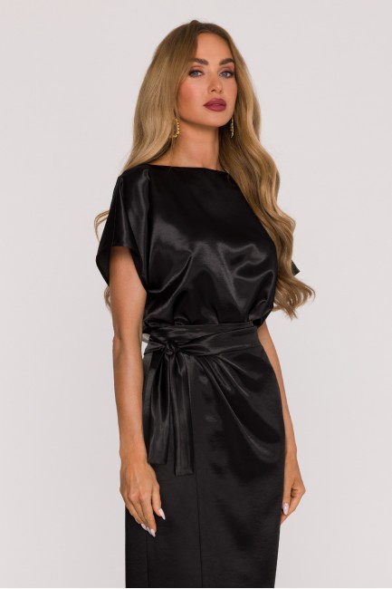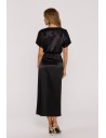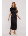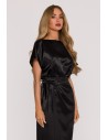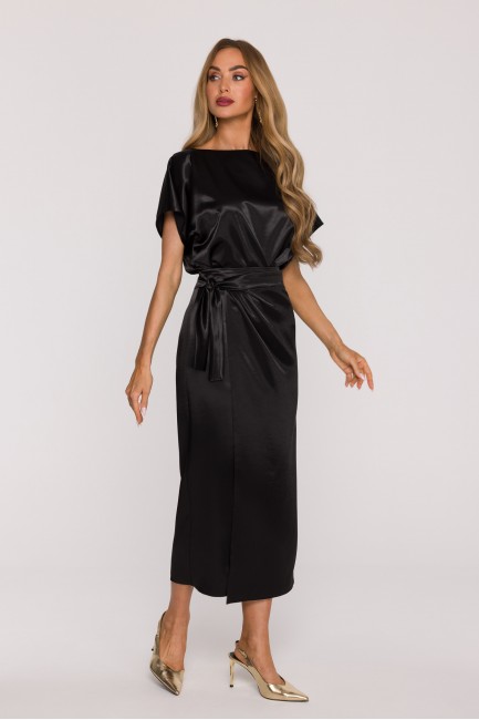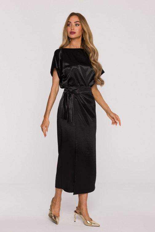 DM1505 Sukienka satynowa z wiązaniem w talii - czarna