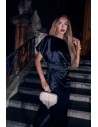 Efektowna satynowa sukienka o połyskującym wykończeniu, która dzięki unikatowemu projektowi jest łatwa do dopasowania. Dół sukienki jest otwarty i wiązany niczym pareo, a górna część może być wciągnięta do spódnicy lub luźno wypadać. Ten model doskonale sprawdzi się na wyjątkowe okazje – eleganckie przyjęcia, bankiety, wesela czy wieczorne wyjścia.