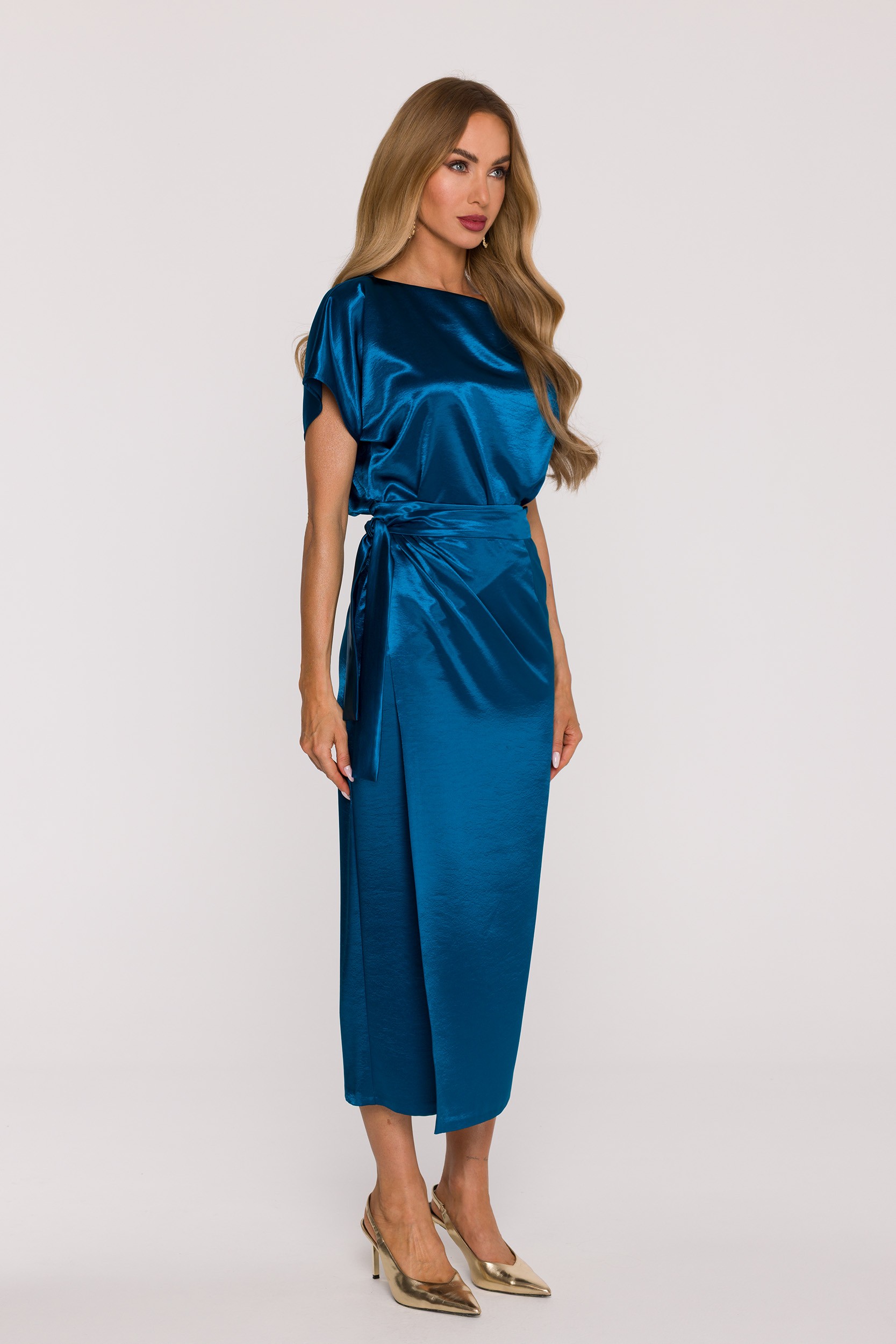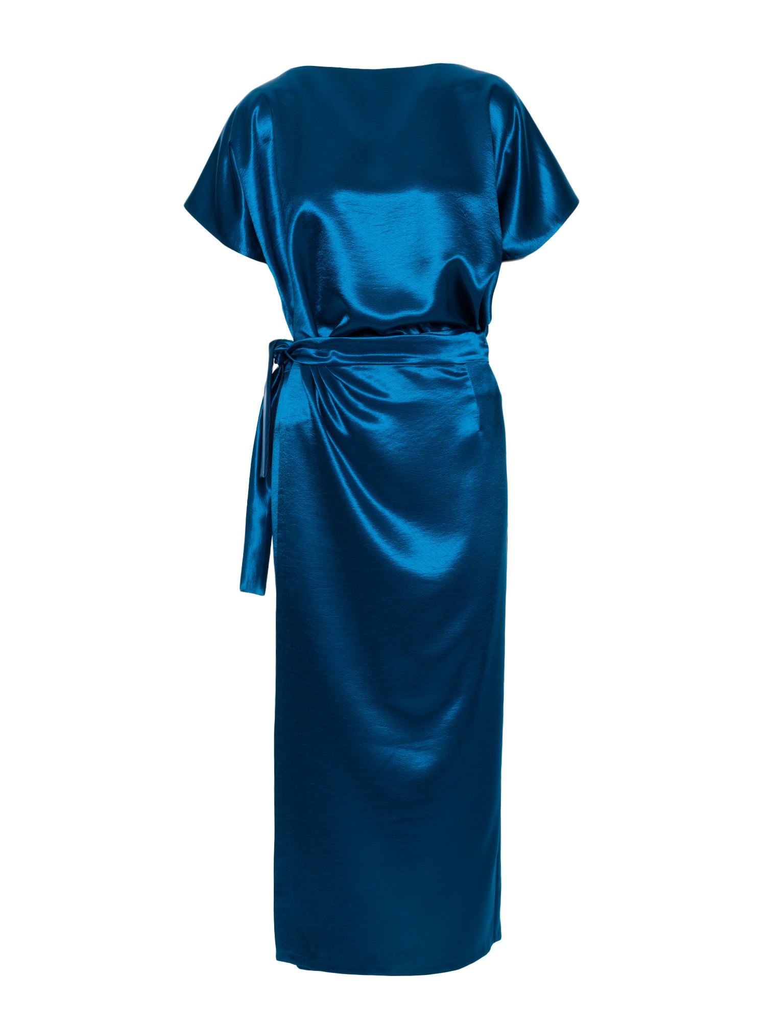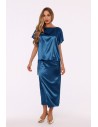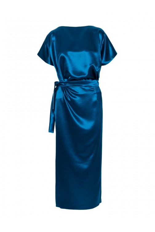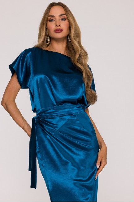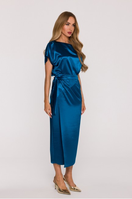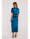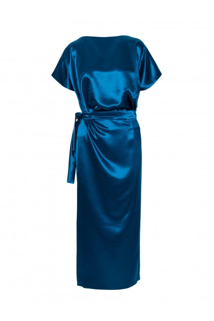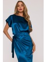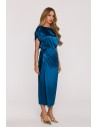 DM1505 Sukienka satynowa z wiązaniem w talii - morska