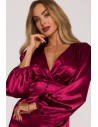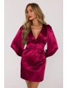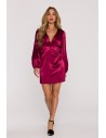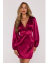 • Fason: elegancka mini satynowa z kopertowym dekoltem