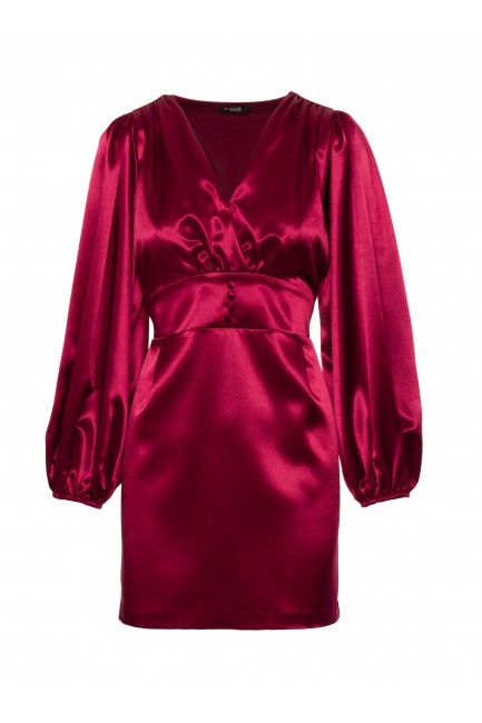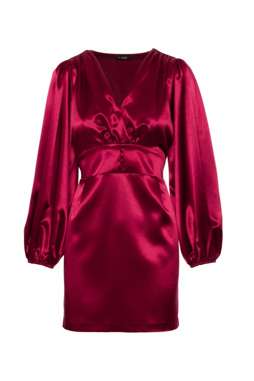 DM1506 Sukienka mini z bufiastymi rękawami - bordowa