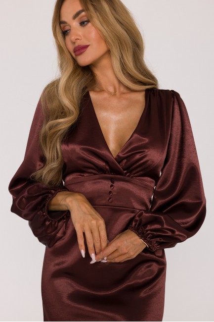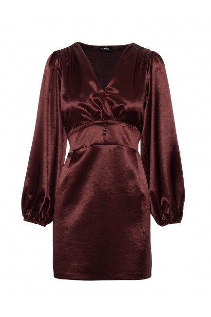 DM1506 Sukienka mini z bufiastymi rękawami - brązowa