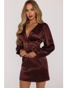• Fason: elegancka mini satynowa z kopertowym dekoltem