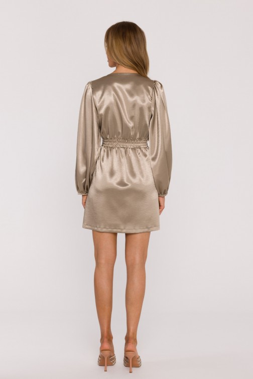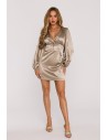 • Fason: elegancka mini satynowa z kopertowym dekoltem