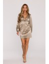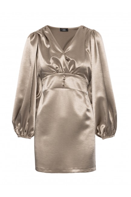 DM1506 Sukienka mini z bufiastymi rękawami - złota