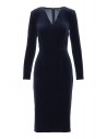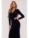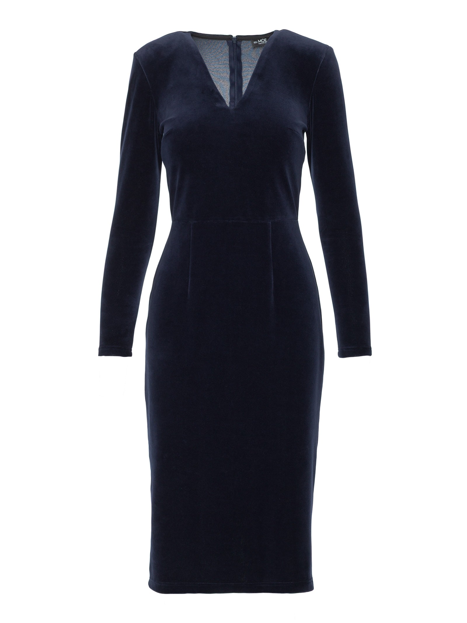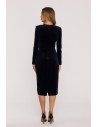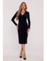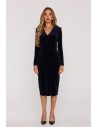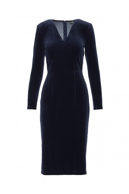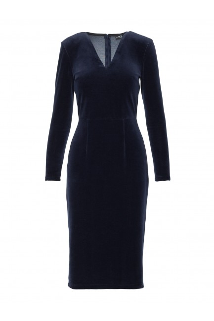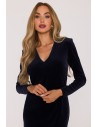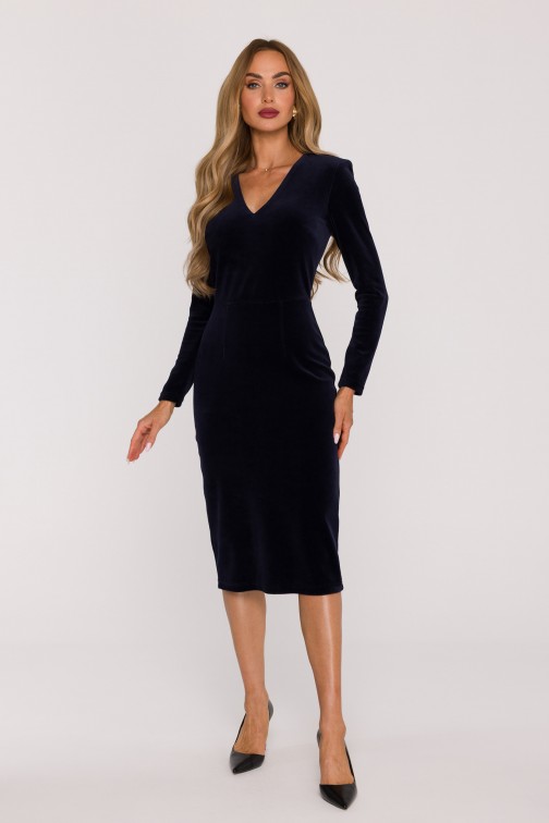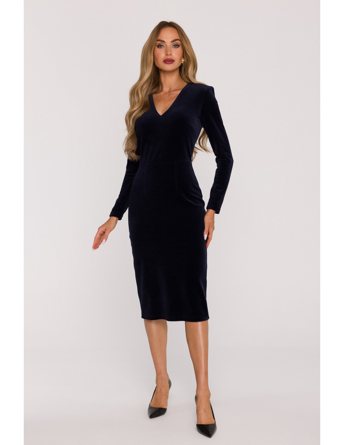DM1507 Sukienka welurowa z dekoltem V - granatowa