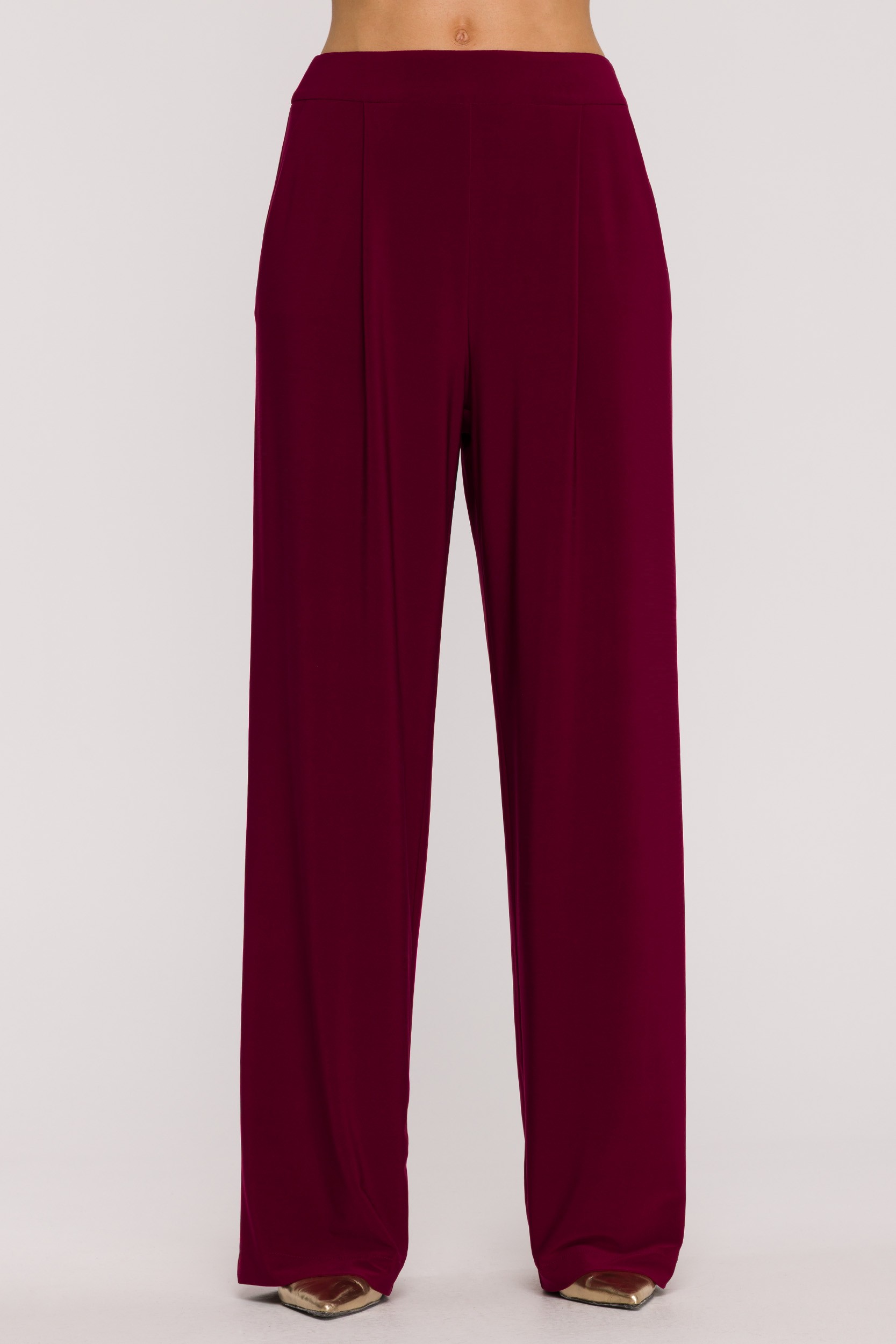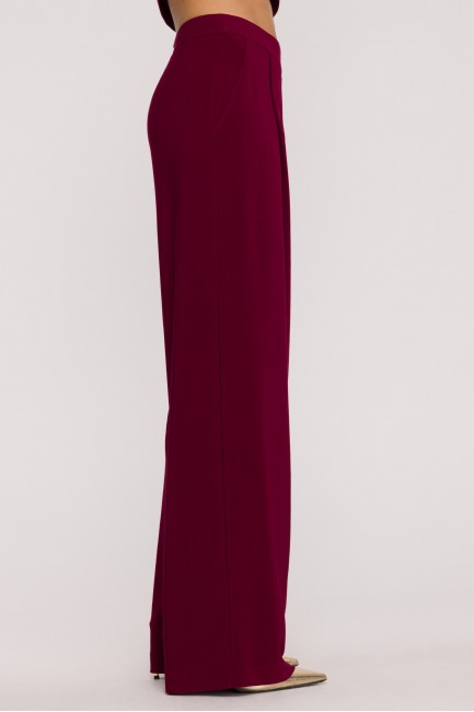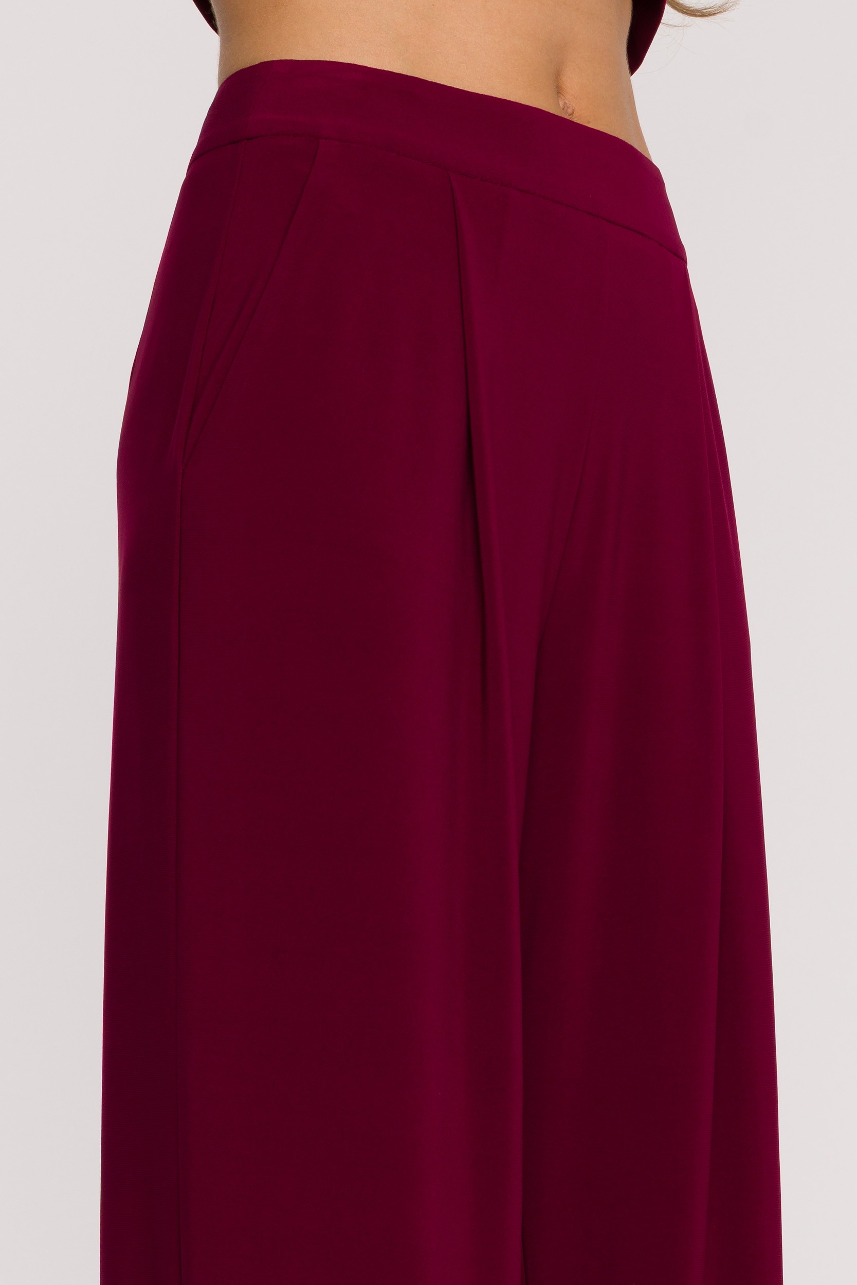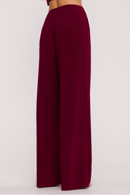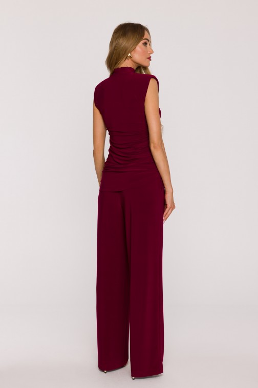 Komplet z marszczoną bluzką i szerokimi spodniami - bordowy