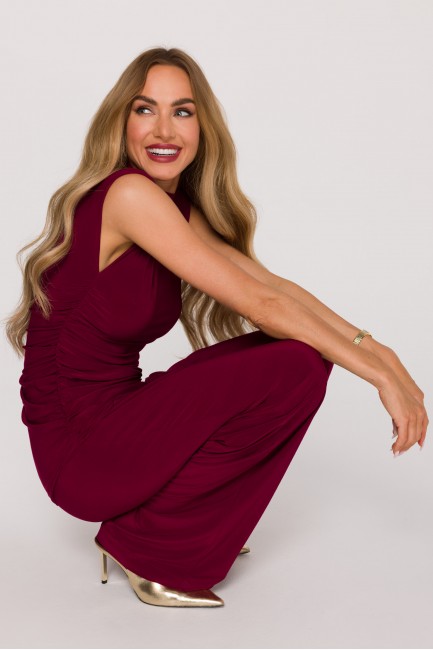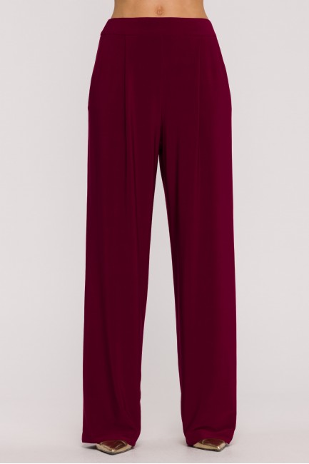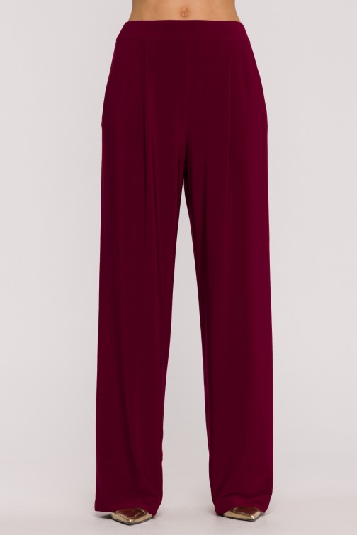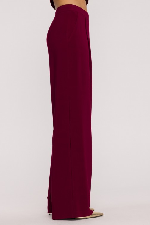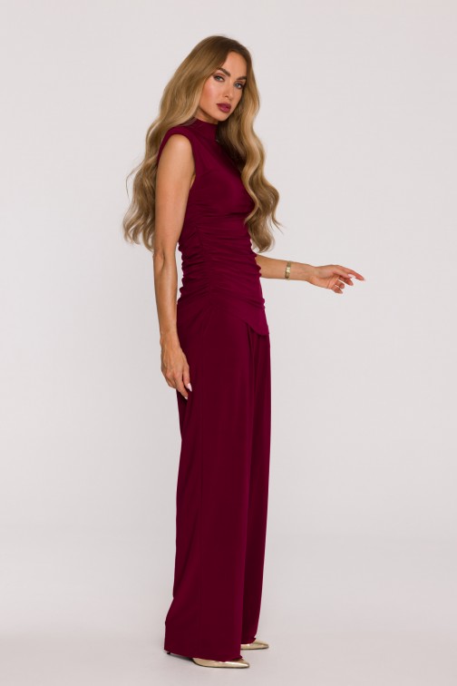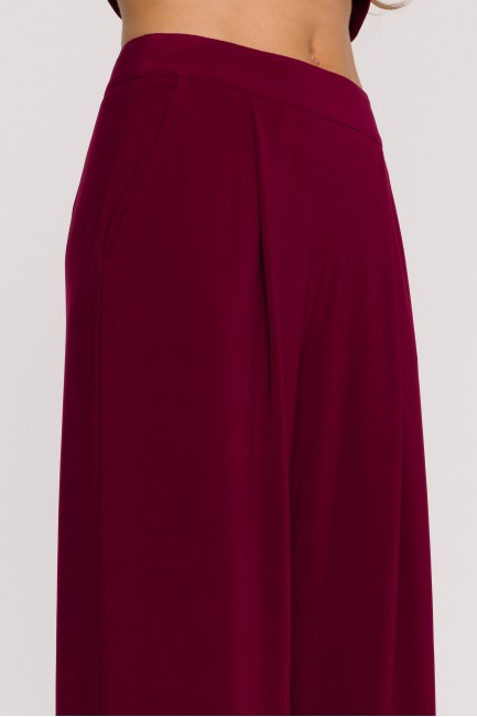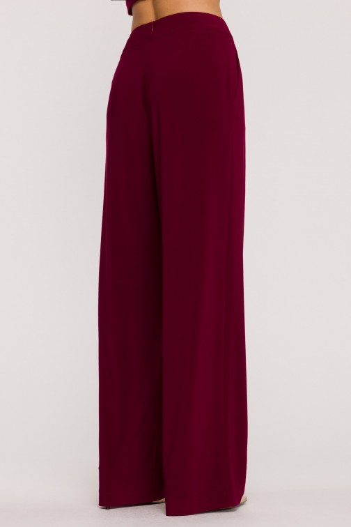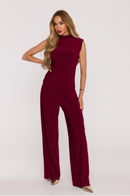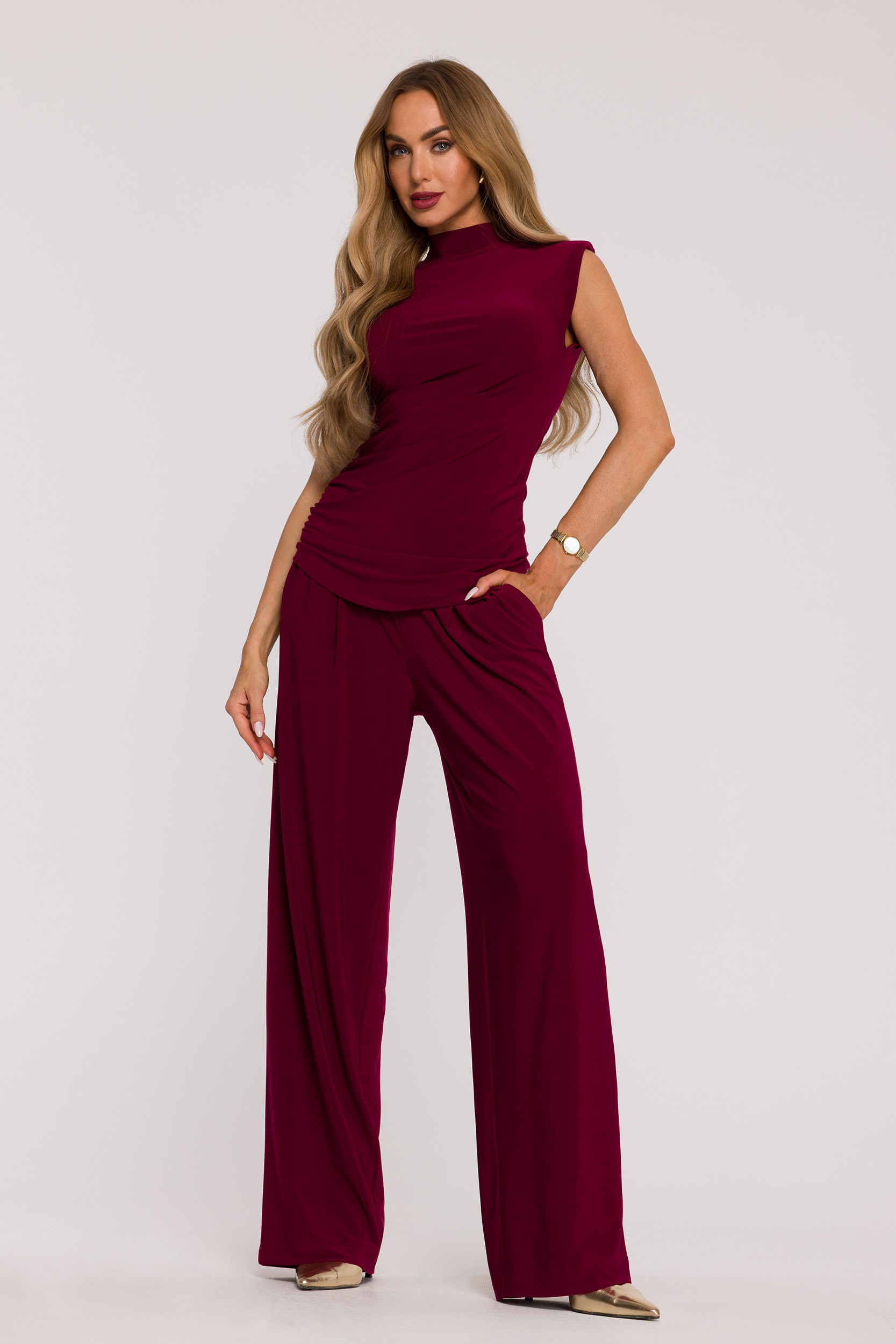 DM1508 Komplet z marszczoną bluzką i szerokimi spodniami - bordowy