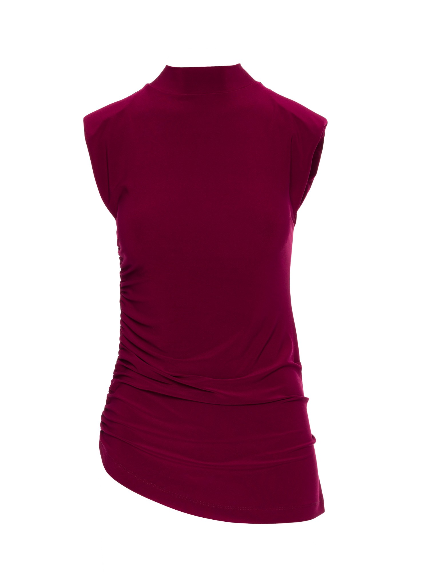 • Bluzka: bez rękawów, z półgolfem, dopasowana, z drapowaniem i asymetrycznym wykończeniem u dołu