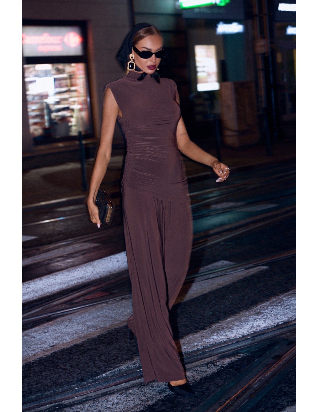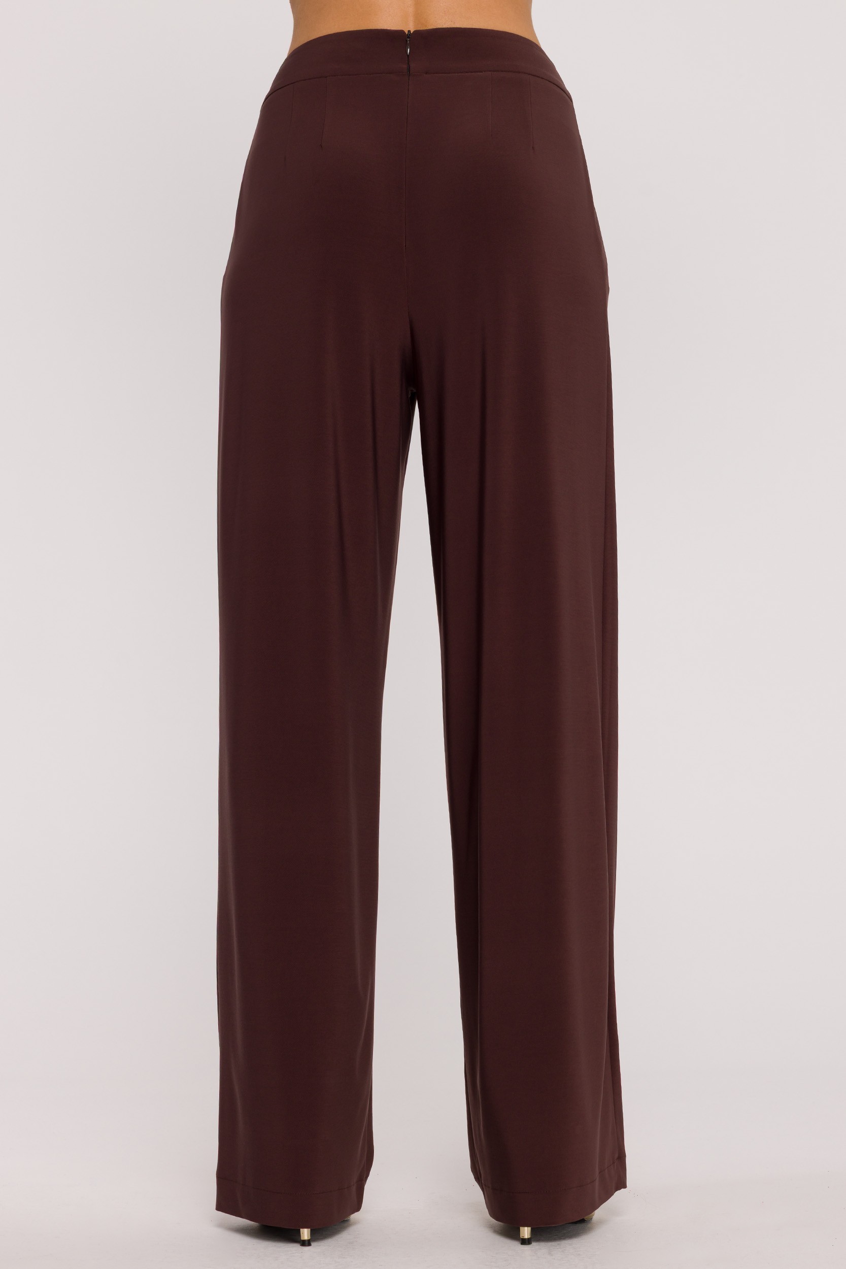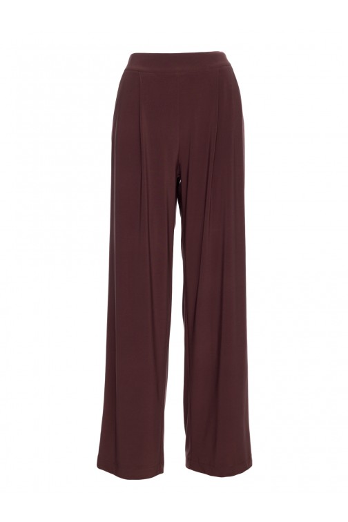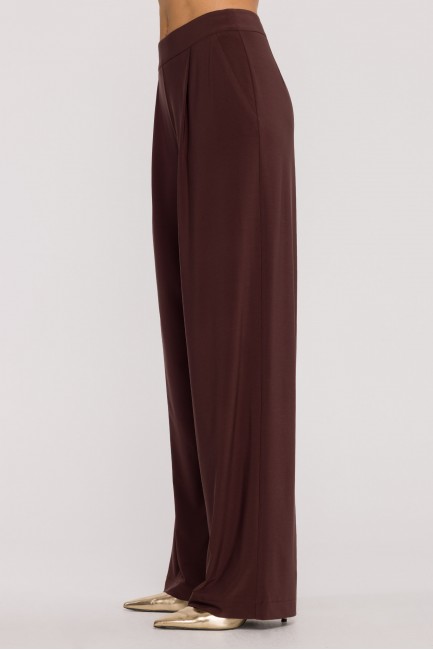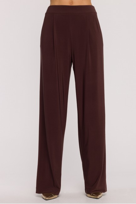 Komplet z marszczoną bluzką i szerokimi spodniami - brązowy