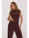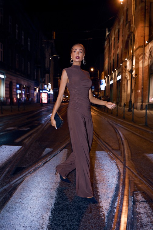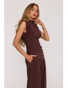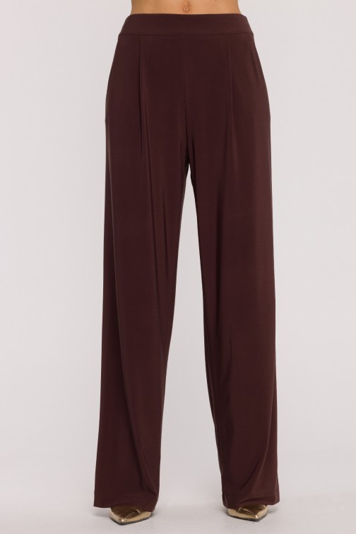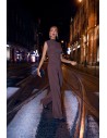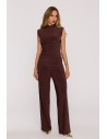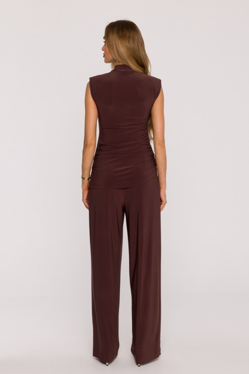 DM1508 Komplet z marszczoną bluzką i szerokimi spodniami - brązowy