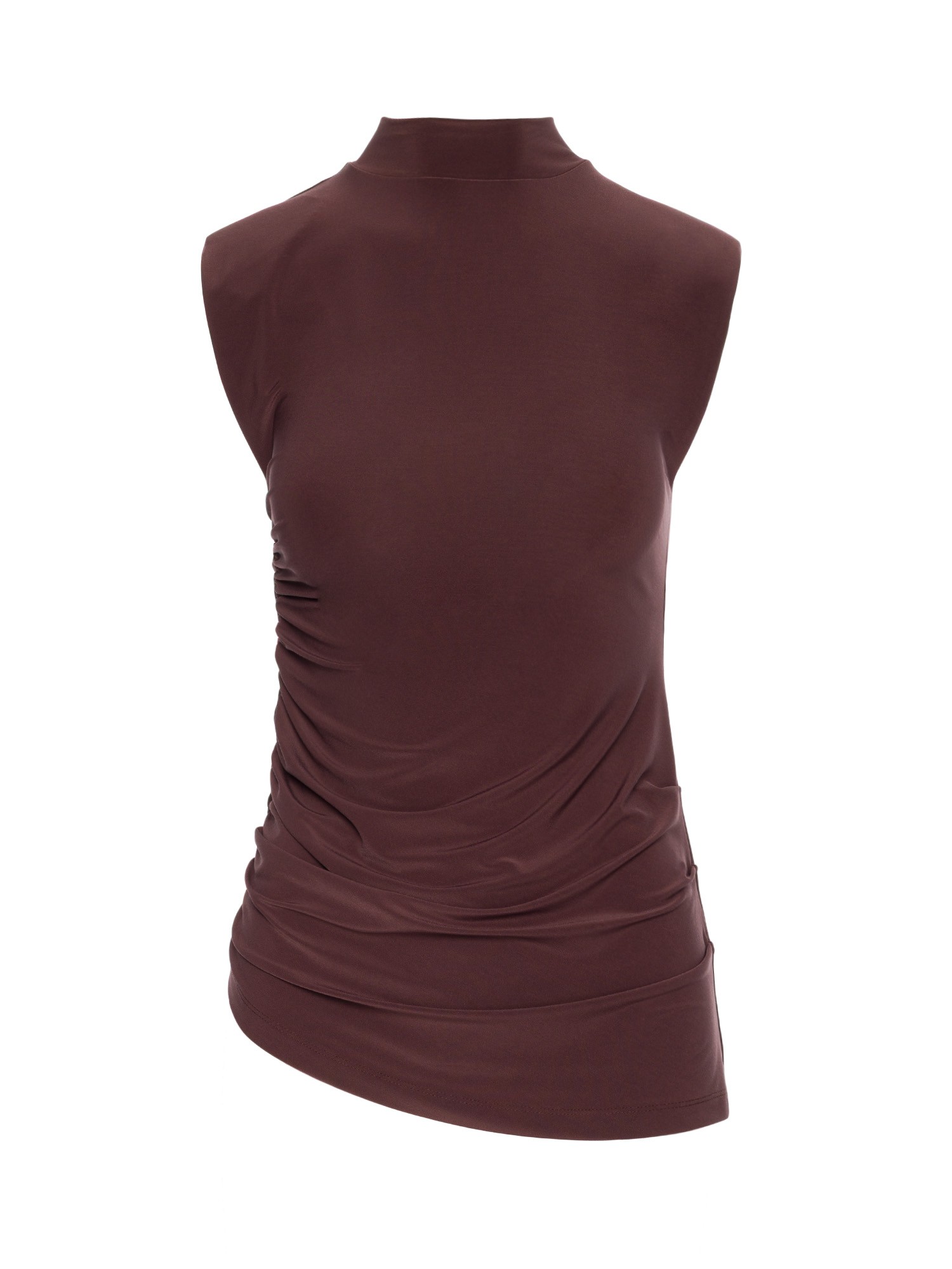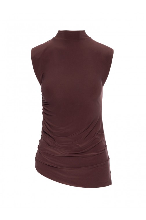 • Bluzka: bez rękawów, z półgolfem, dopasowana, z drapowaniem i asymetrycznym wykończeniem u dołu