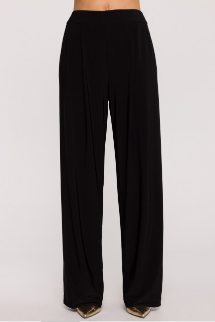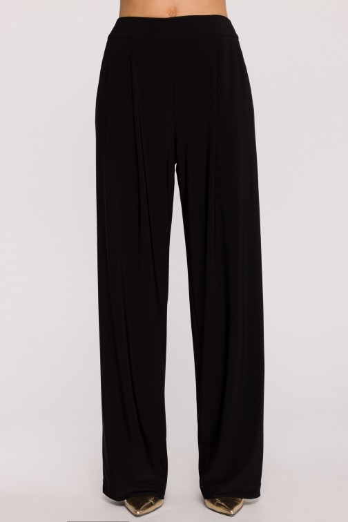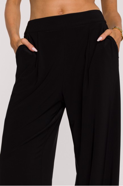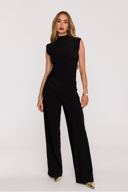 DM1508 Komplet z marszczoną bluzką i szerokimi spodniami - czarny