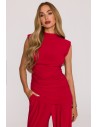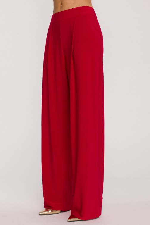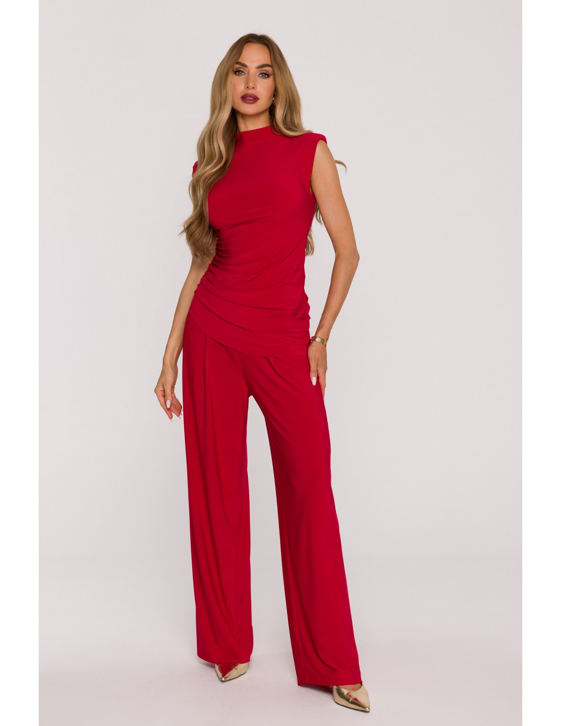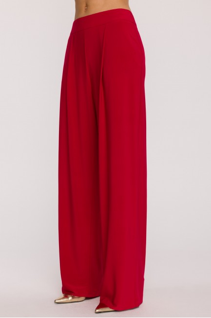 Komplet z marszczoną bluzką i szerokimi spodniami - czerwony