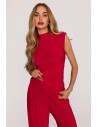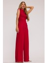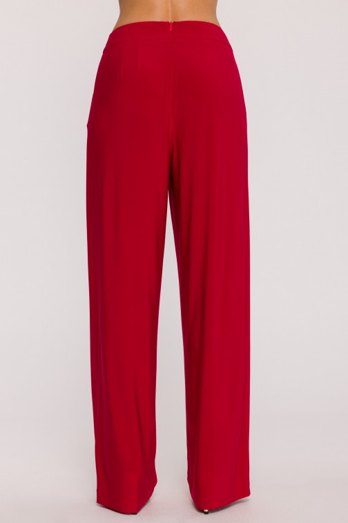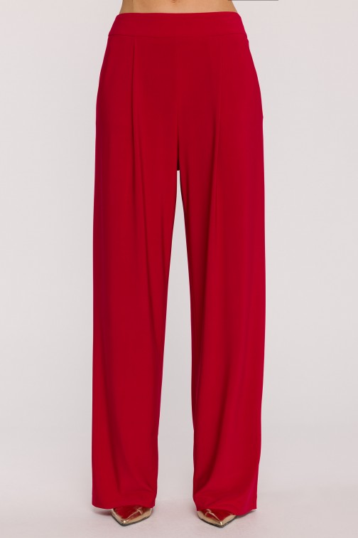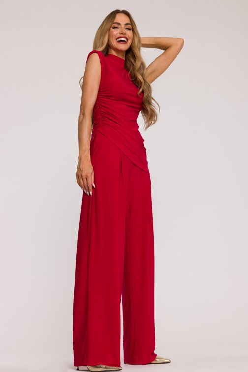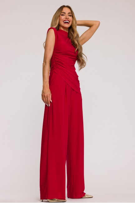 DM1508 Komplet z marszczoną bluzką i szerokimi spodniami - czerwony