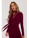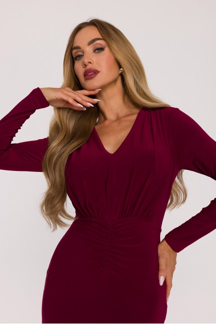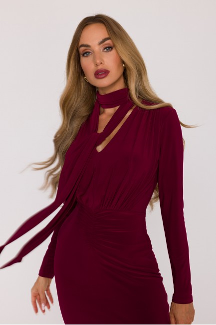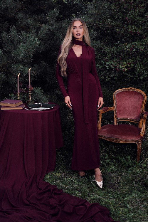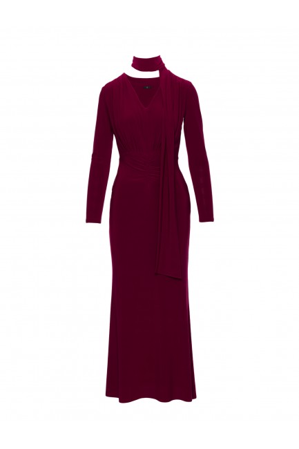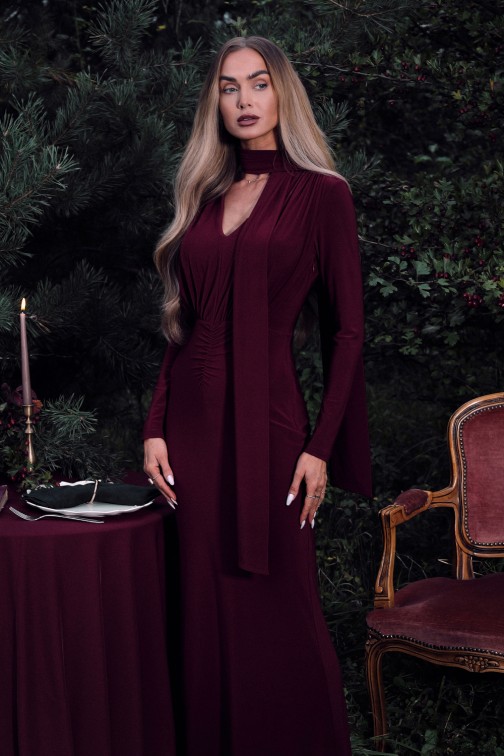DM1509 Elegancka sukienka maxi z szarfą - bordowa