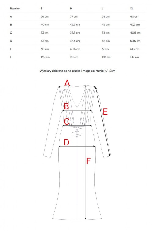 • Kształt: górna część dopasowana, talia zaakcentowana, dół lekko poszerzany