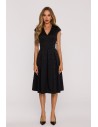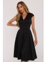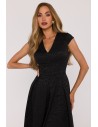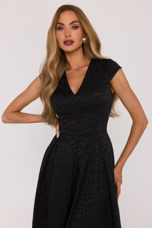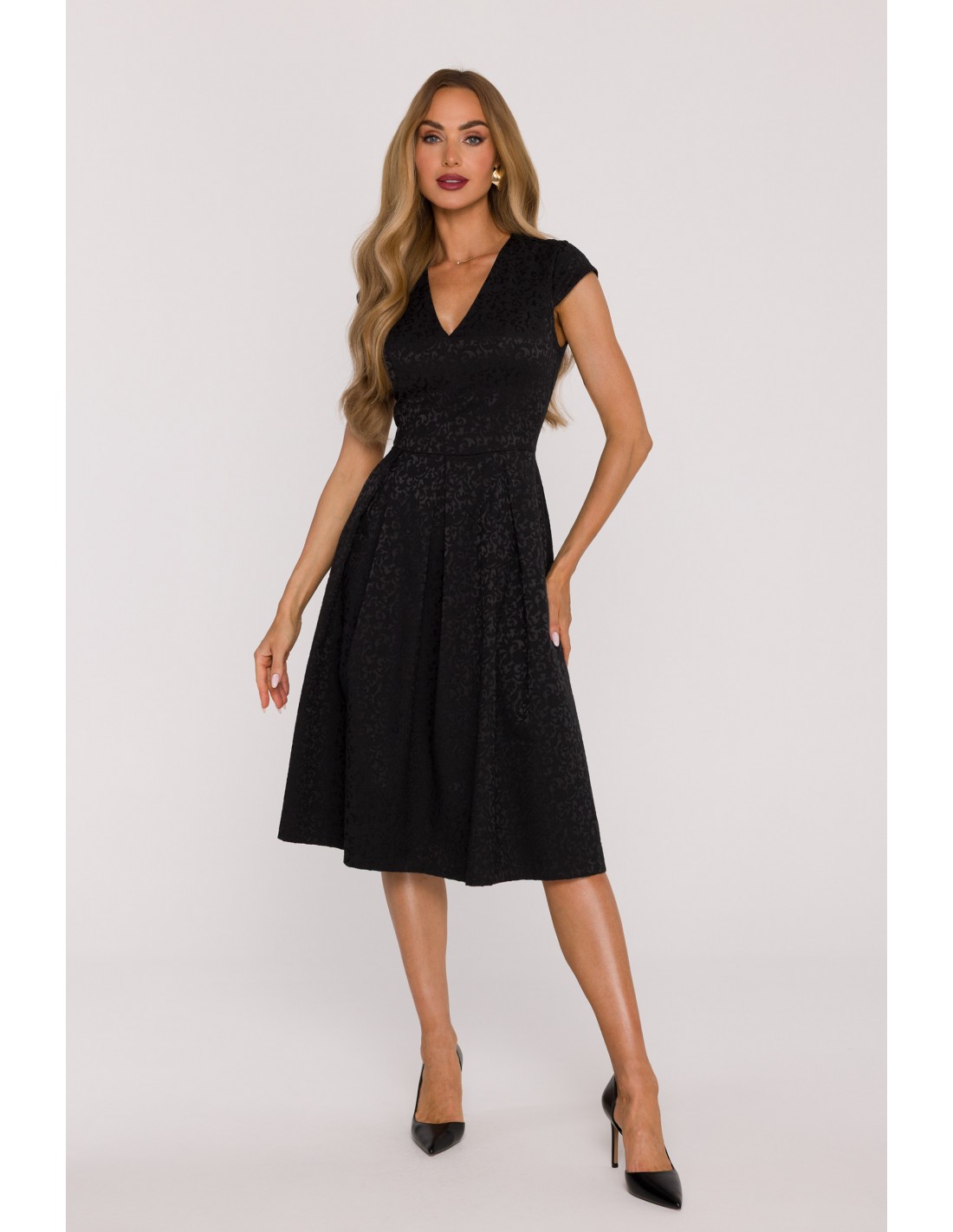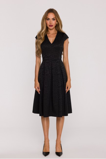 DM1510 Sukienka żakardowa rozkloszowana z krótkim rękawem - czarna