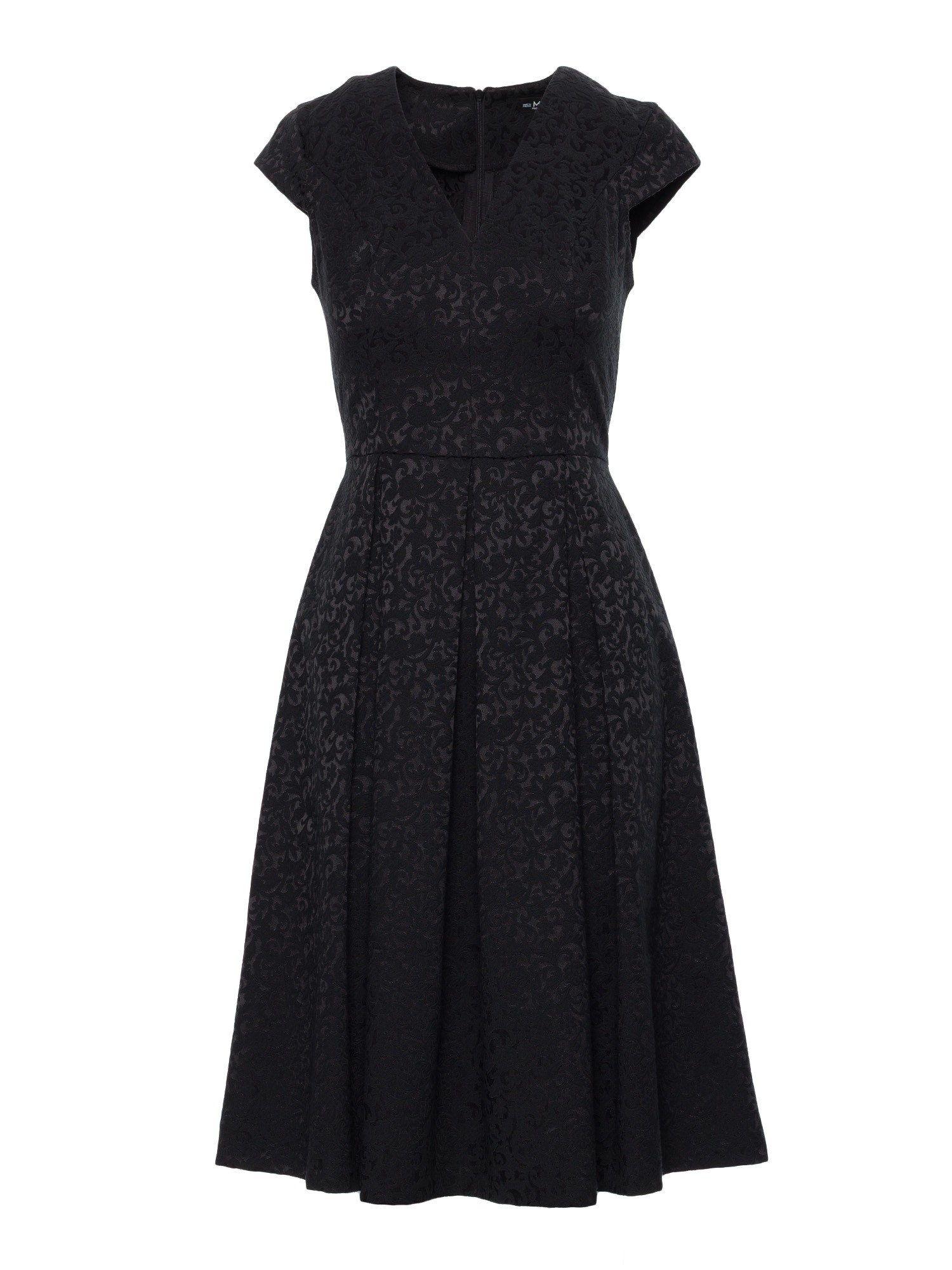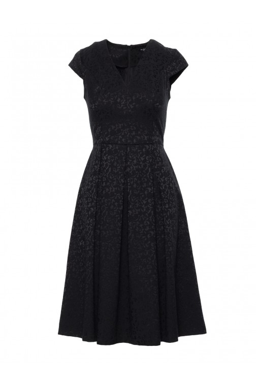 Sukienka żakardowa rozkloszowana z krótkim rękawem - czarna