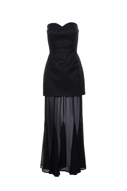 Sukienka gorsetowa z szyfonową spódnicą - czarna