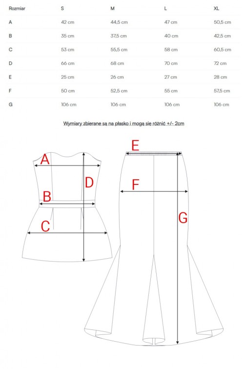 • Długość: mini (gorsetowa sukienka) + maxi (spódnica)