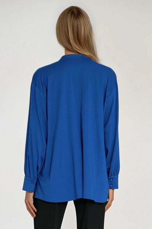 DM1512 Bluzka oversize z marszczeniem - chabrowa