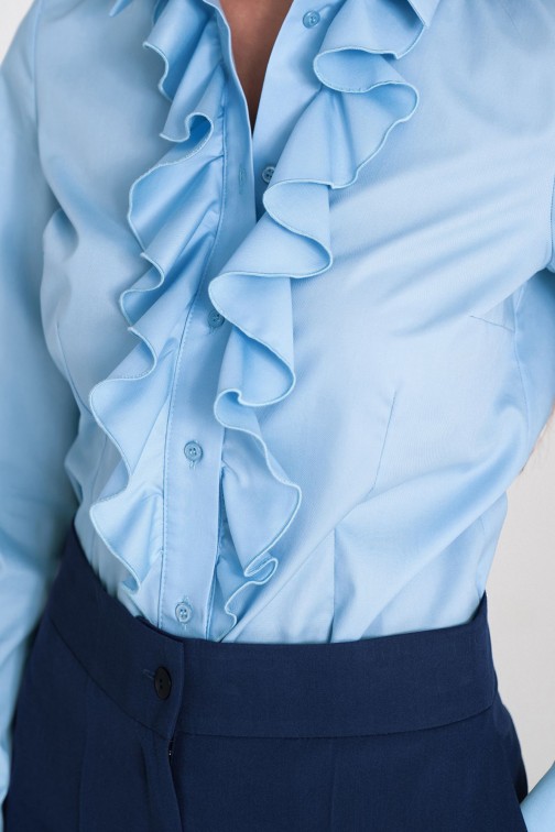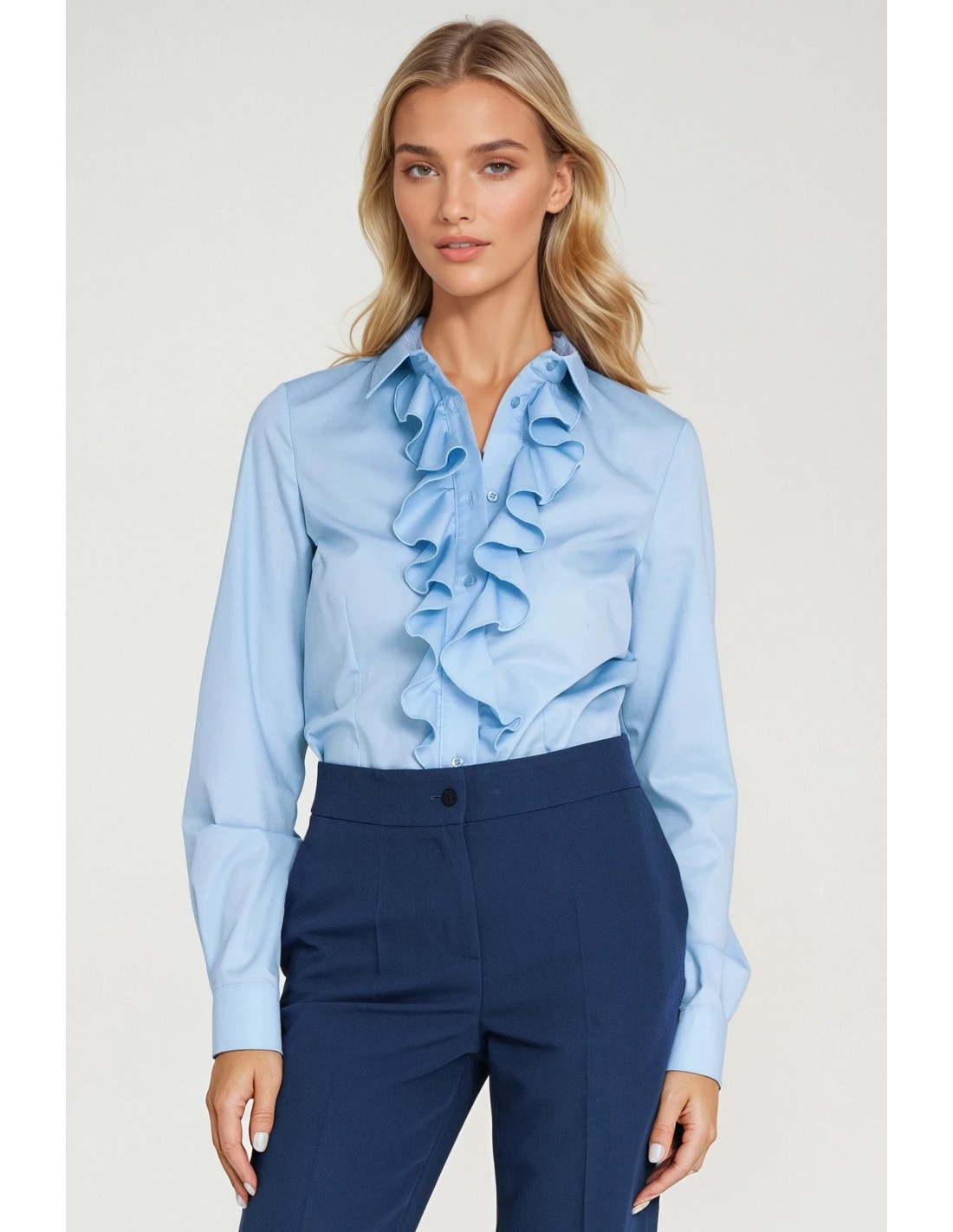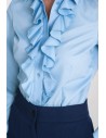 DM1514 Koszula damska z żabotem i długim rękawem - niebieska