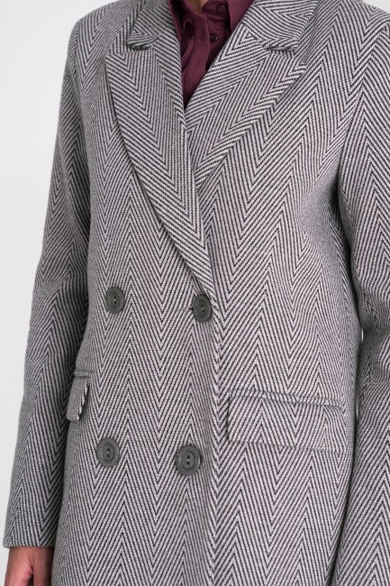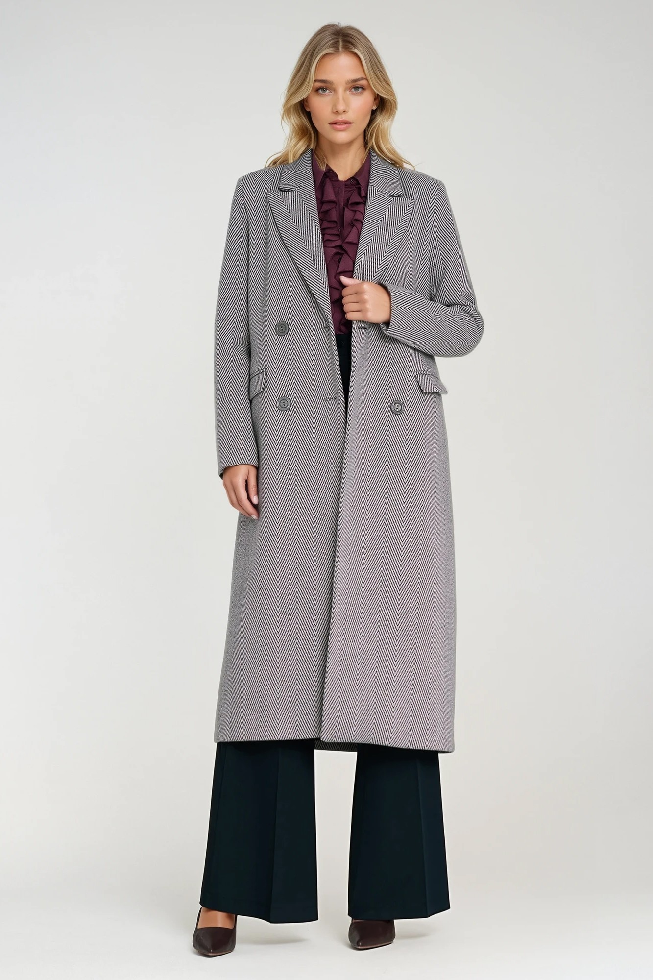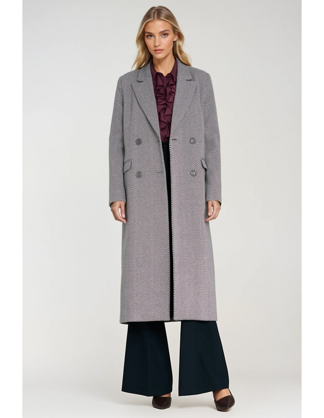 Elegancki płaszcz dwurzędowy z kołnierzem - jodła
