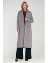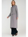 Długi płaszcz damski o prostym kroju z paskiem to elegancki i minimalistyczny element garderoby, który sprawdzi się w sezonie jesienno-zimowym. Fason w długości midi nadaje sylwetce smukłości, a klasyczne klapy podkreślają ponadczasowy charakter. Pasek pozwala nosić płaszcz przewiązany w talii lub luźno, by dopasować styl do okazji. Praktyczne kieszenie boczne zwiększają funkcjonalność, czyniąc model idealnym wyborem zarówno do pracy, jak i na specjalne wyjścia.