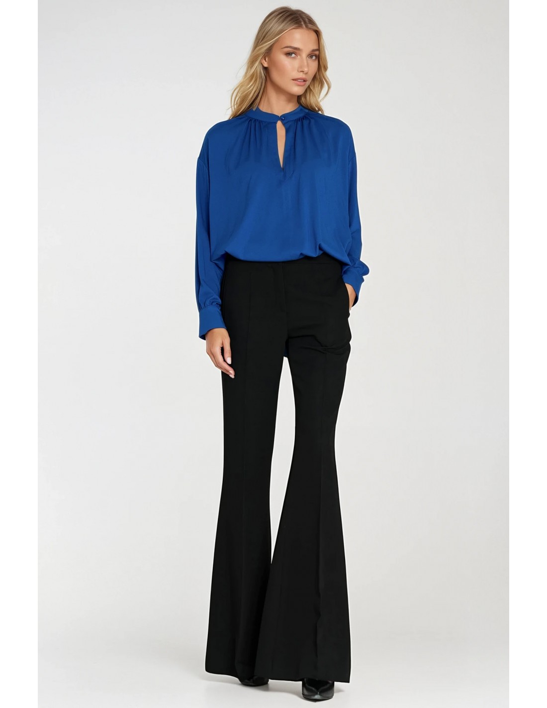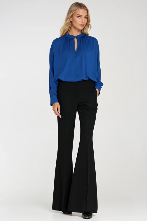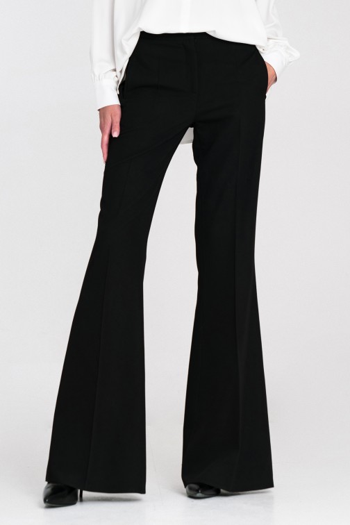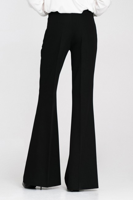 DM1516 Klasyczne spodnie dzwony na kant - czarne