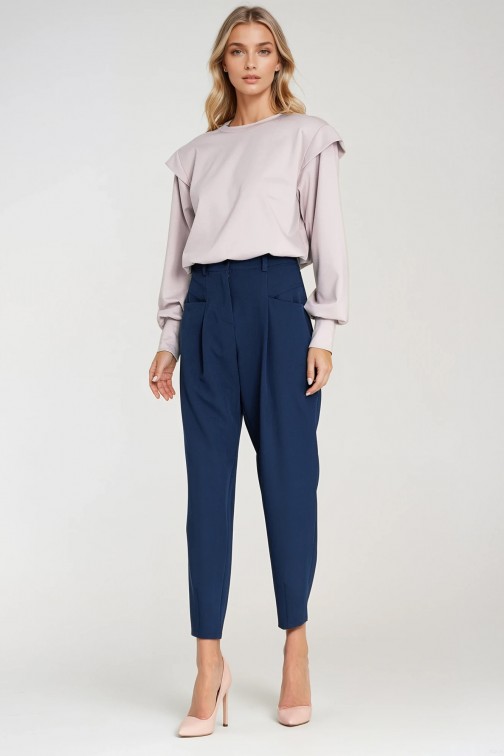 DM1517 Spodnie baggy z wysokim stanem - kobaltowe