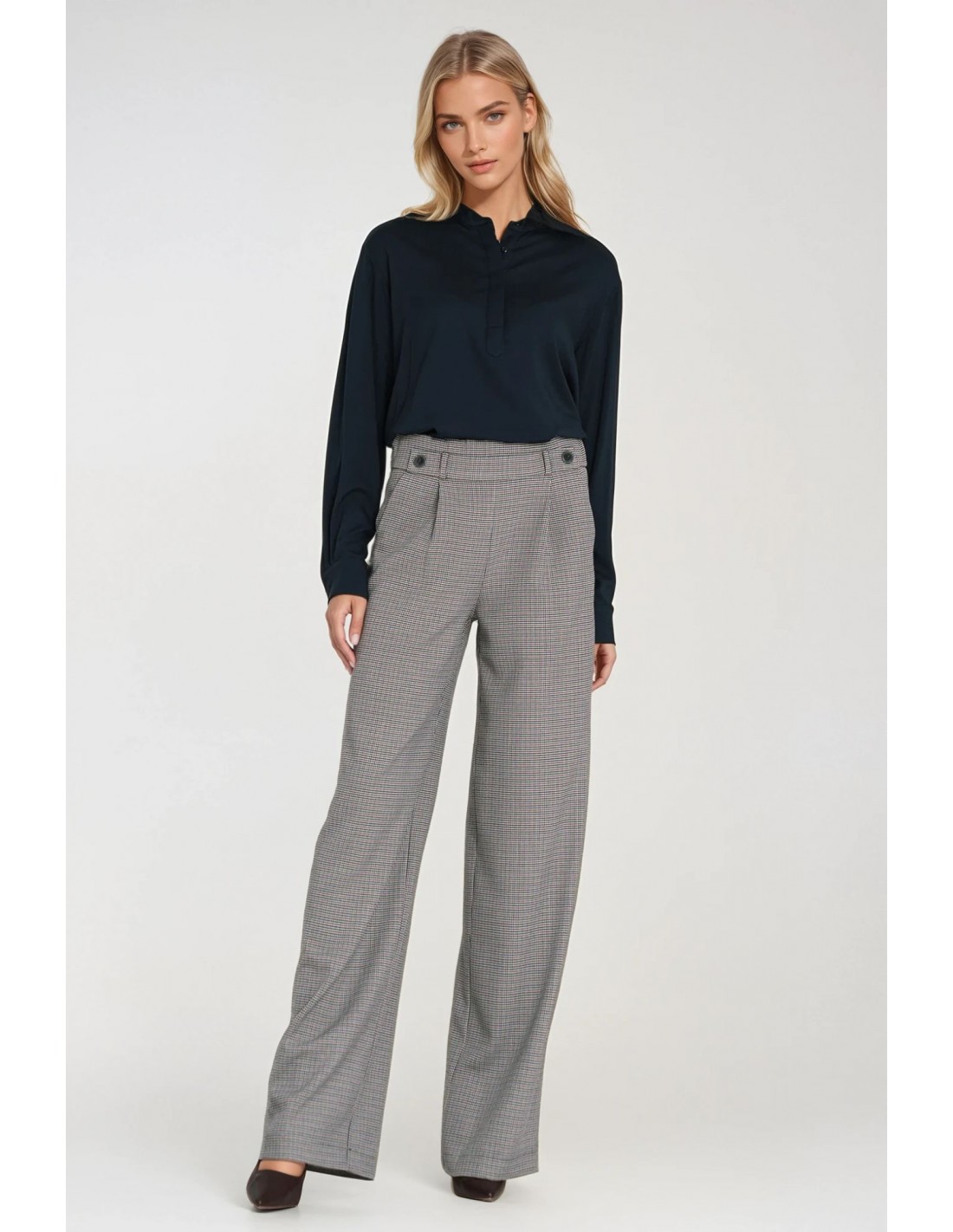 DM1520 Spodnie wide leg z gumą w pasie i guzikami - pepitko
