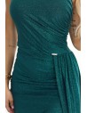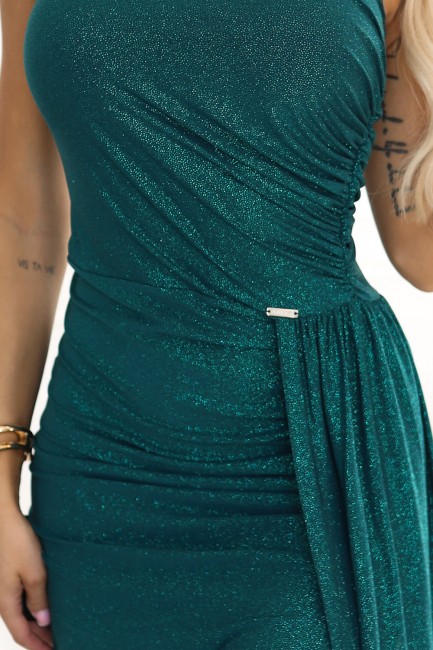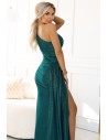 DM1524 Błyszcząca sukienka na jedno ramię z rozcięciem na nogę - zielona