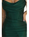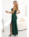 DM1525 Długa sukienka satynowa z rozcięciem na nogę - butelkowa zieleń