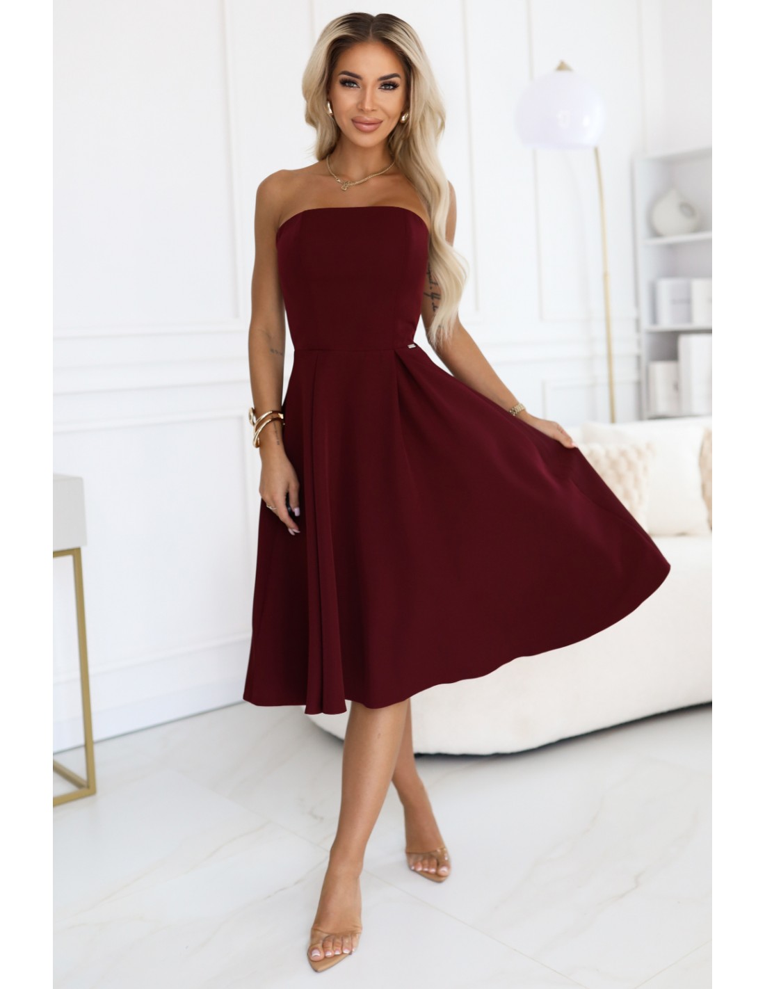 DM1527 Rozkloszowana sukienka gorsetowa midi - bordowa