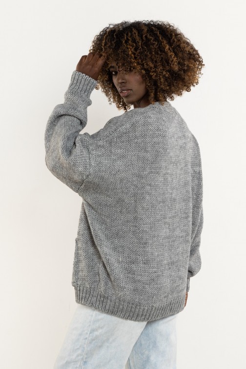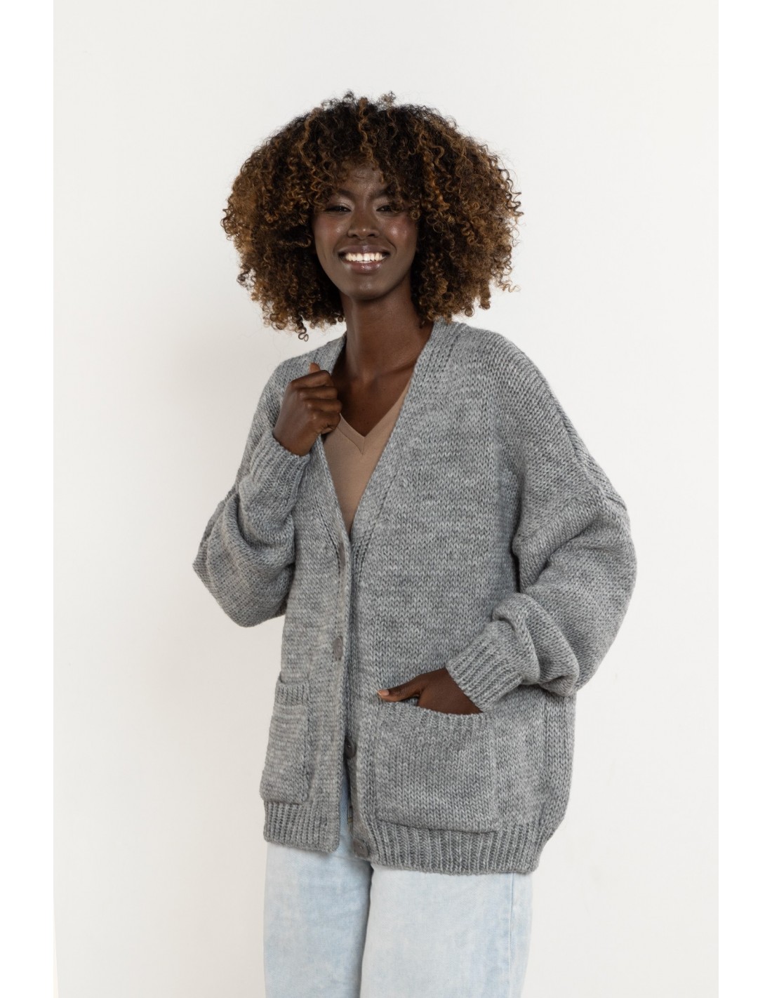 Damski kardigan zapinany na guziki to miękki, praktyczny basic w stylu oversize — idealny zarówno do codziennych, jak i biurowych stylizacji. Luźny krój z obniżoną linią ramion zapewnia swobodę i komfort, a dekolt w kształcie litery V subtelnie wysmukla sylwetkę i ułatwia tworzenie warstwowych zestawów. Wyrazisty dzianinowy splot oraz prążkowane wykończenia mankietów i dołu podkreślają jakość wykonania, dzięki czemu model stanowi ponadczasowy element garderoby kapsułowej. Sweter można nosić na wiele sposobów — rozpięty jako lekką narzutkę lub zapięty zamiast klasycznego swetra. Długość sięgająca bioder zapewnia odpowiednie proporcje i wygodę noszenia przez cały dzień. To niezawodna propozycja do pracy, na uczelnię i weekendowe wyjścia.