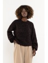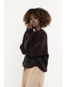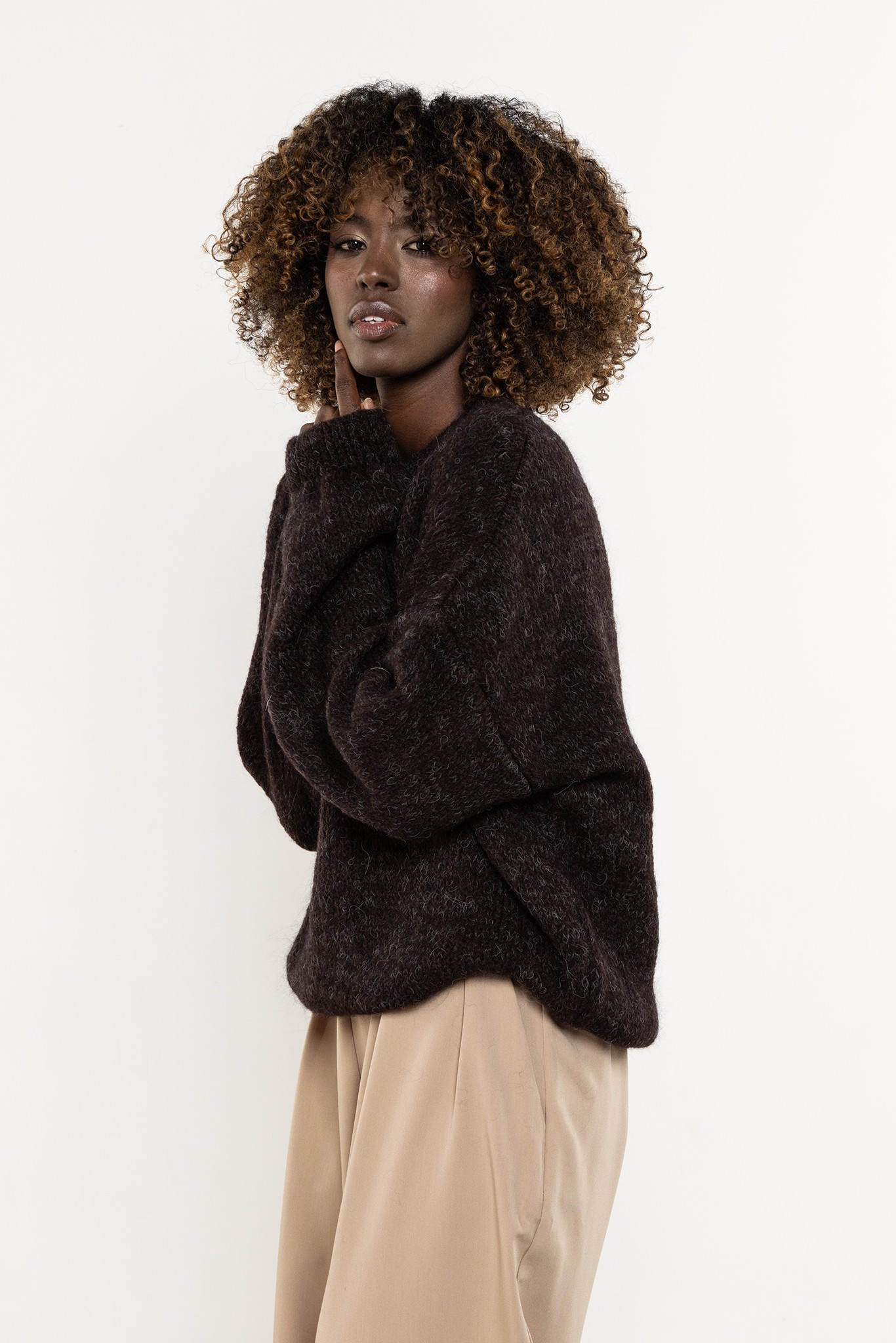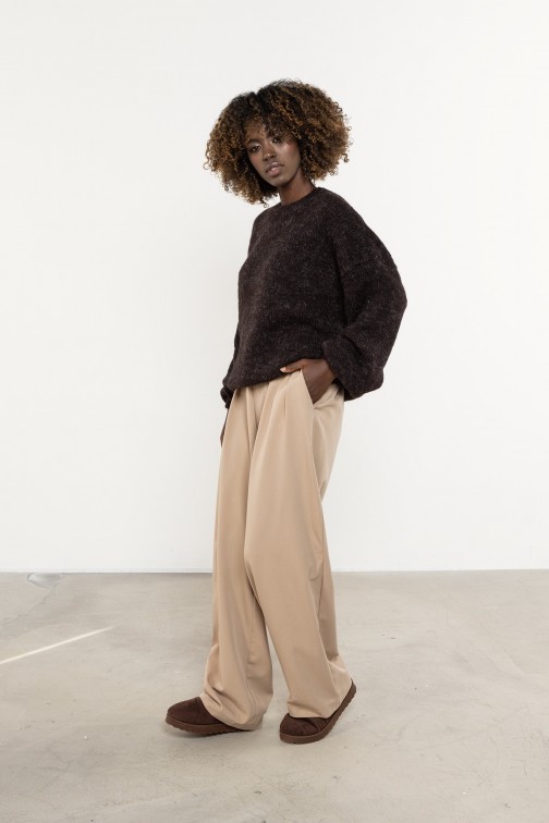 Miękki sweter damski ze ściągaczami - czekoladowy
