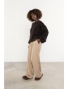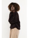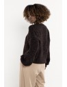 DM1530 Miękki sweter damski ze ściągaczami - czekoladowy