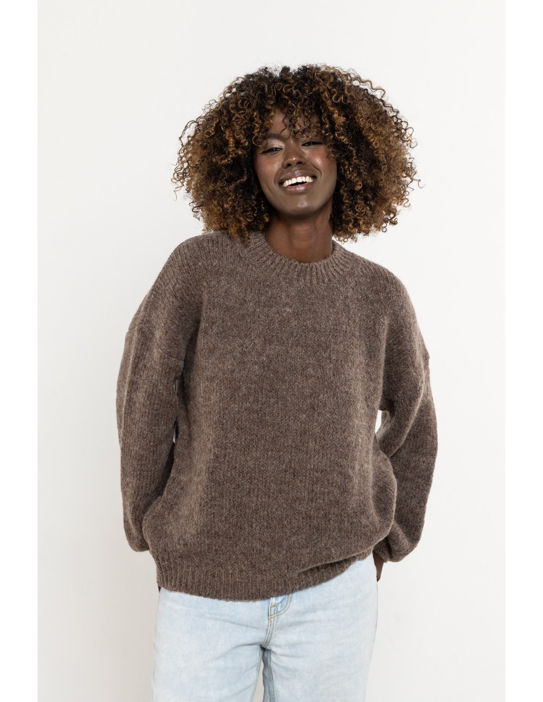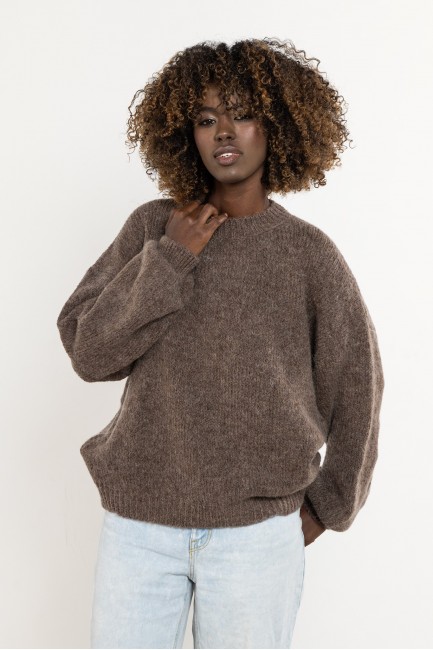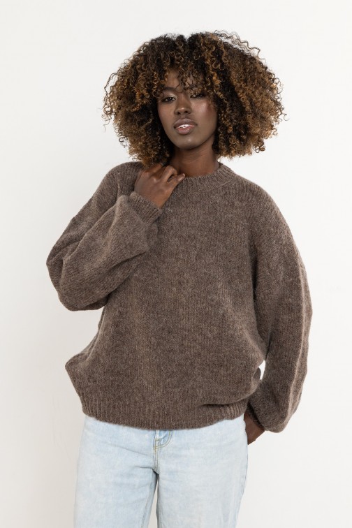 Miękki sweter z domieszką kid moheru to puchaty basic, który otula ciepłem i dodaje przytulności każdej stylizacji. Prosty, swobodny krój z obniżoną linią ramion zapewnia komfort i lekkość, a delikatnie puszysta dzianina nadaje mu wyjątkowo miękki charakter. Okrągły dekolt oraz lekko bufiaste rękawy podkreślają nowoczesny, „relaxed” styl, idealny na co dzień, do biura lub na weekendowy wyjazd. Wyraźne, prążkowane ściągacze przy mankietach i u dołu utrzymują fason i chronią przed chłodem. Długość lekko zakrywająca biodra sprawia, że sweter doskonale współgra z jeansami, spodniami z wyższym stanem lub satynową spódnicą. Minimalistyczny design czyni go wszechstronnym elementem kapsułowej garderoby.