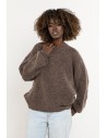 DM1530 Miękki sweter damski ze ściągaczami - karmelowy