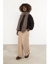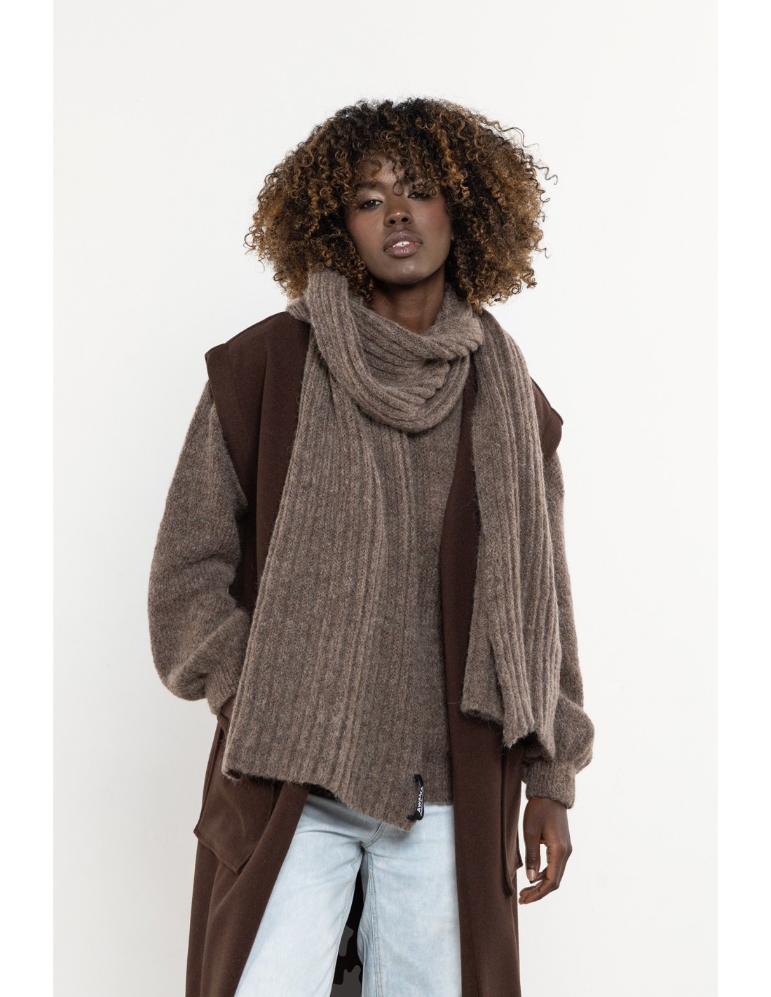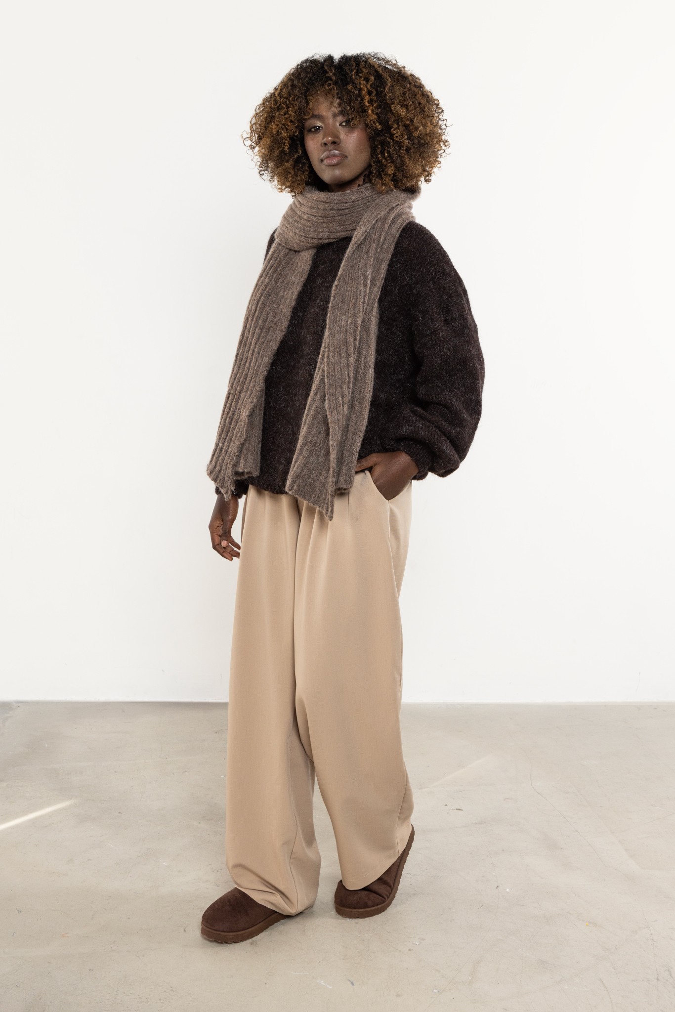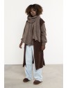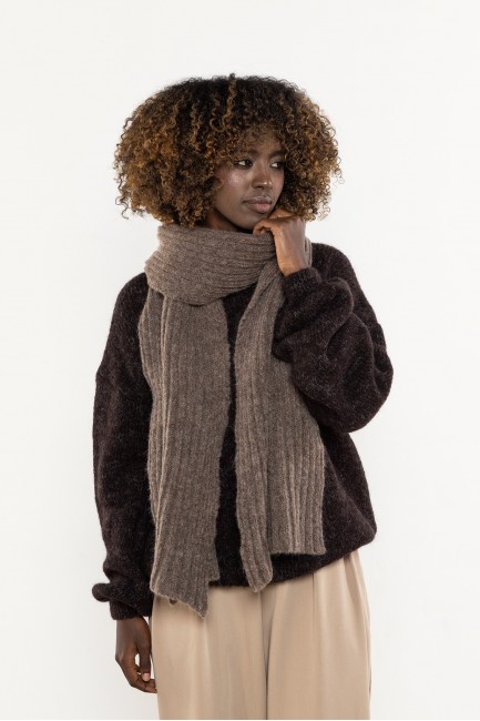 Długi, puszysty szalik z domieszką moheru to otulający dodatek, który łączy ciepło, miękkość i elegancję. Wykonany z przyjemnej w dotyku dzianiny o sprężystym splocie, skutecznie chroni przed chłodem i wiatrem, pozostając lekki oraz delikatny dla skóry. Jego ponadczasowy, minimalistyczny design sprawia, że doskonale komponuje się zarówno z płaszczem, jak i puchową kurtką. Szalik można nosić na wiele sposobów — owinięty wokół szyi, związany w węzeł francuski lub zarzucony na ramiona jak szal. Prążkowana faktura dodaje mu objętości i przytulnego charakteru, a staranne wykończenia na brzegach zapobiegają strzępieniu. To niezbędny element zimowej garderoby, który łączy funkcjonalność z ponadczasowym stylem.