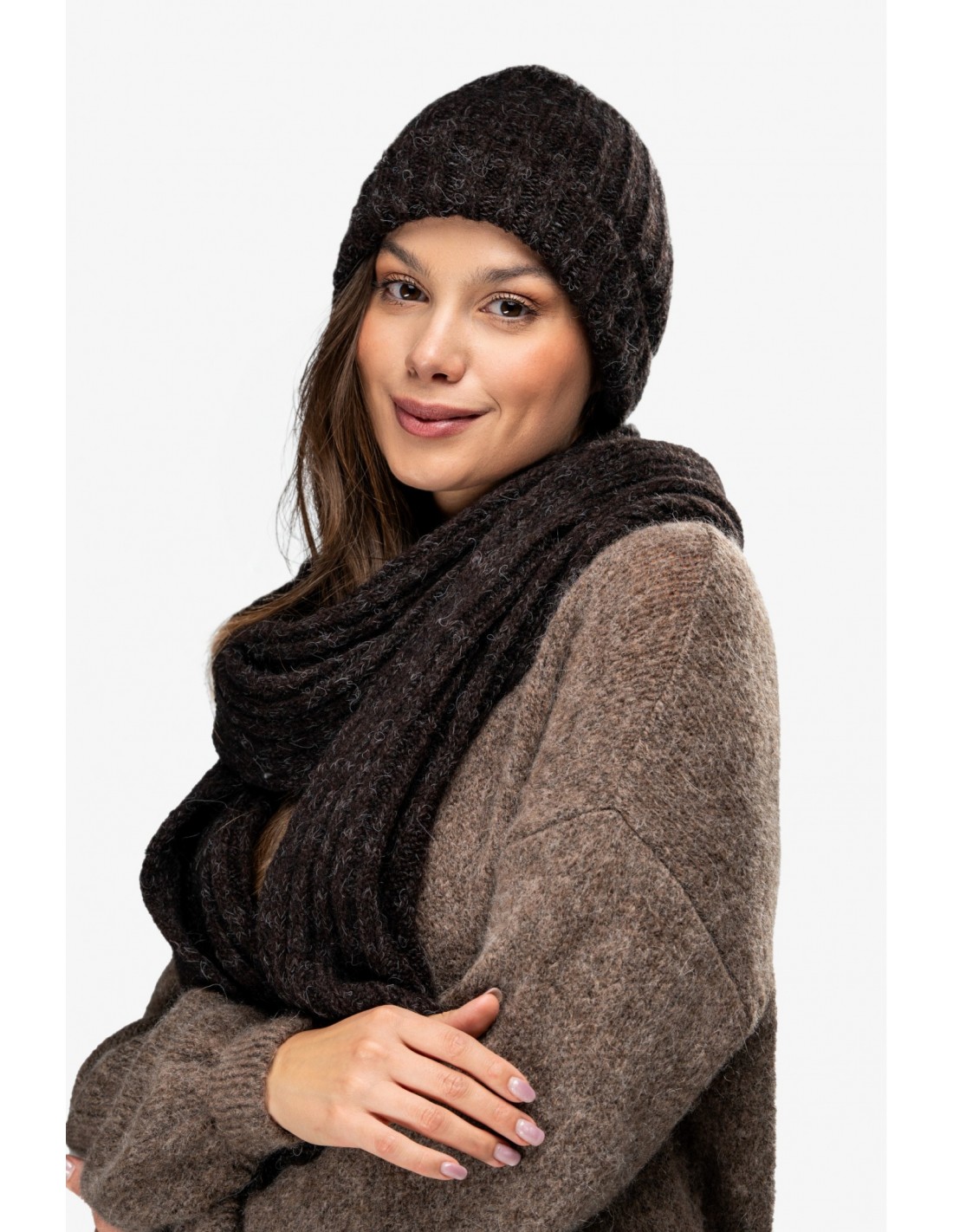 DM1532 Czapka prążkowana z domieszką moheru - czekoladowa