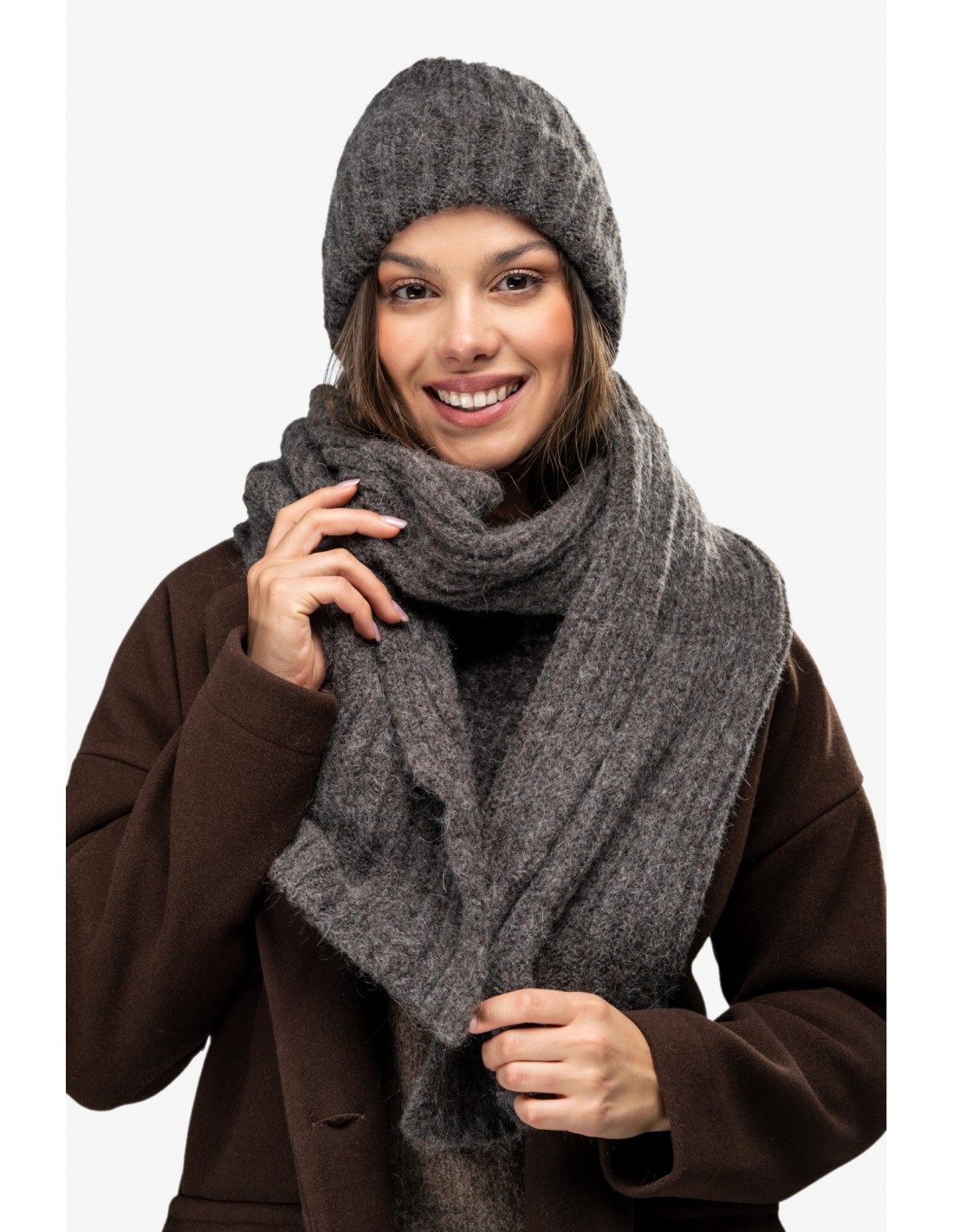 DM1532 Czapka prążkowana z domieszką moheru - taupe