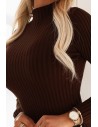 DM1538 Dopasowana sukienka swetrowa z golfem - czekoladowa