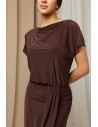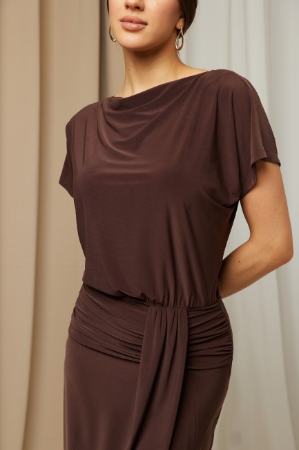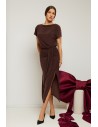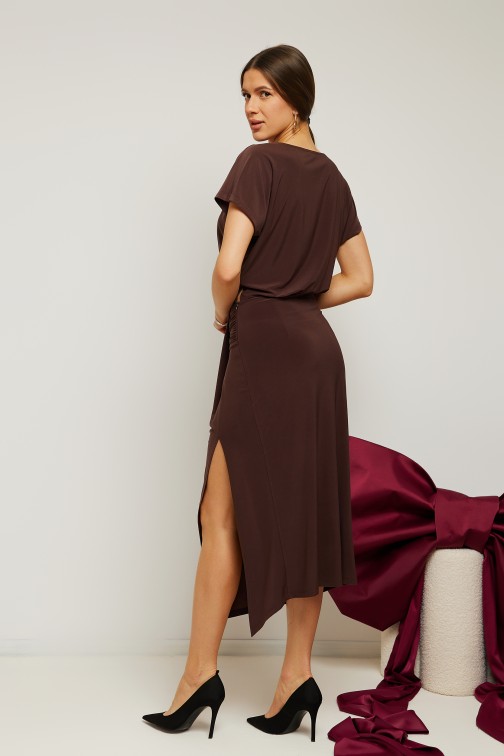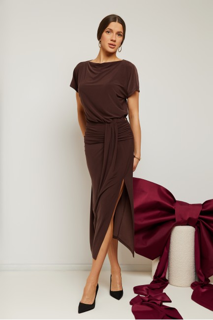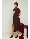 DM1540 Elegancka sukienka midi z rozcięciem na nogę - brązowa