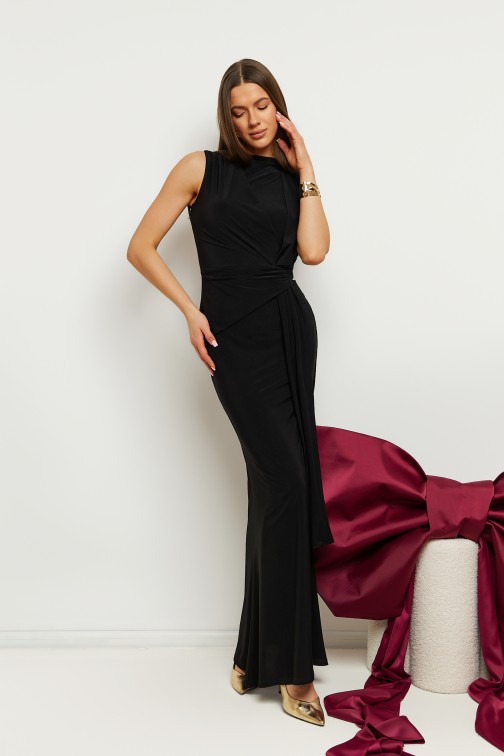 DM1541 Dopasowana sukienka wieczorowa maxi - czarna