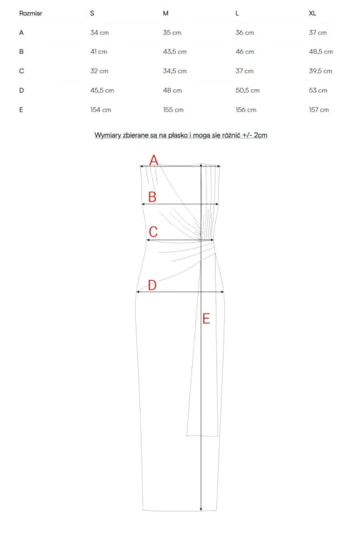 • Dodatki: integralna szarfa opadająca wzdłuż sylwetki