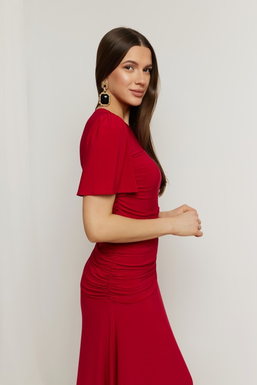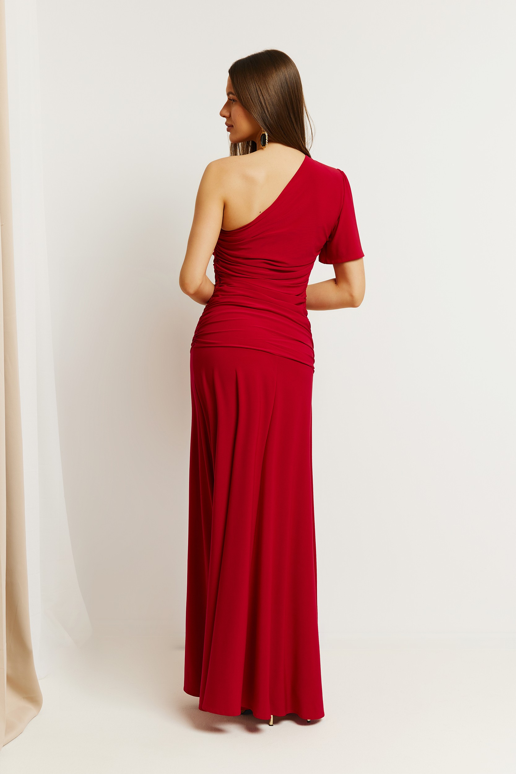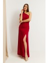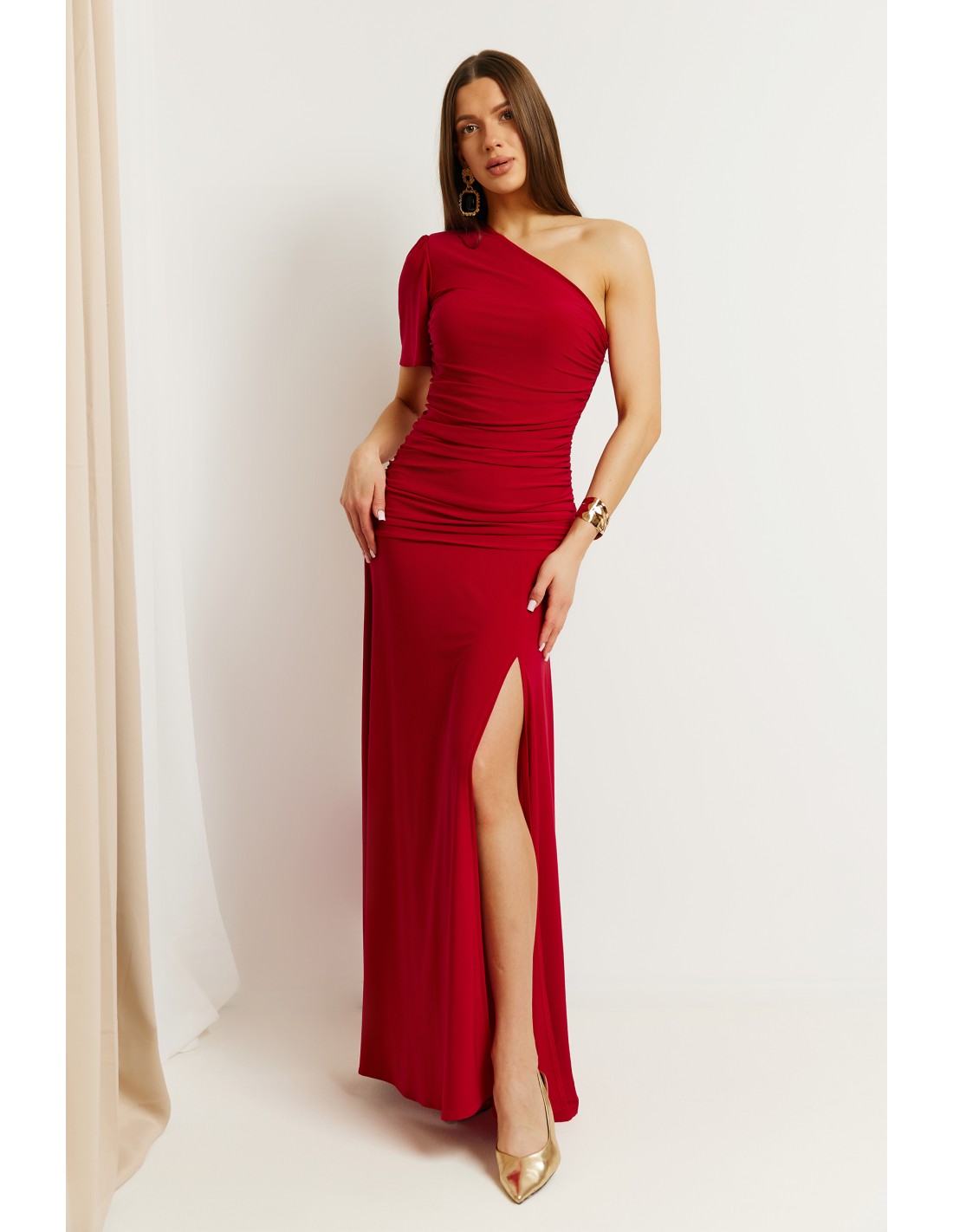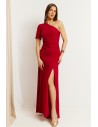 DM1542 Sukienka maxi na jedno ramię - czerwona